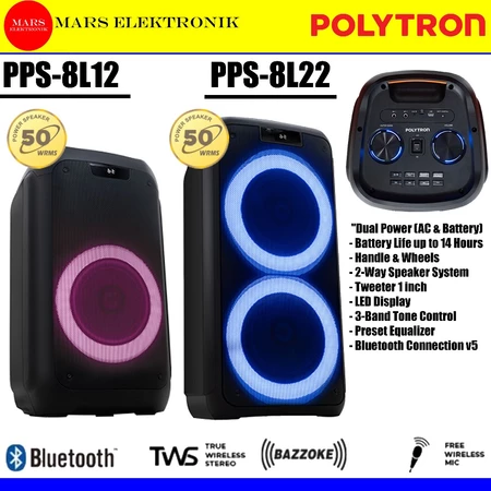 SPEAKER POLYTRON PPS-8L12 - PPS8L22 - PARTY SPEAKER PORTABLE POLYTRON - PPS 8L12 / PPS 8L22 - AMPLI MEETING - READY