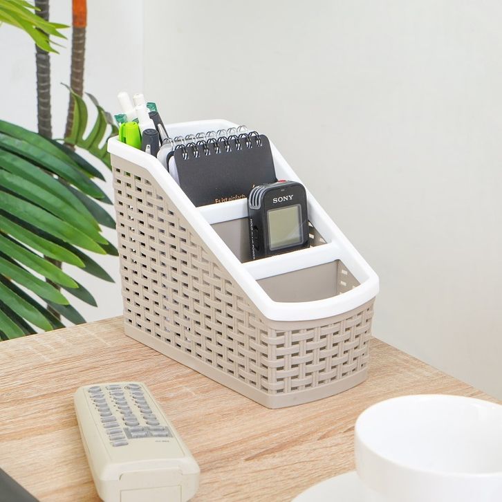 Tempat Remote Tv Polka (S) - Krem Remote Desk Wadah Remot Serbaguna Organizer Penyimpanan Meja Multifungsi