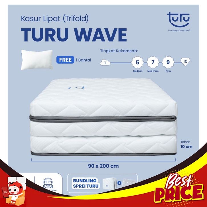 BAGUS KASUR LIPAT LANTAI TRIFOLD PREMIUM TURU WAVE REBOUNDED UK. 10X90X200 + FREE BANTAL