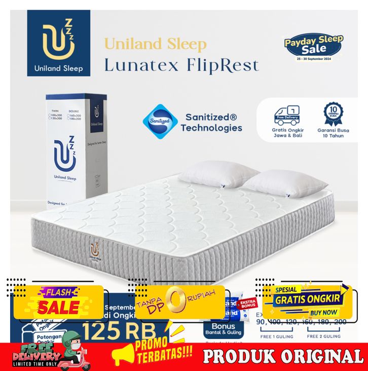 BAGUS KASUR BUSA UNILAND SLEEP LUNATEX FLIPREST 25CM LATEX HR / DUAL FEEL