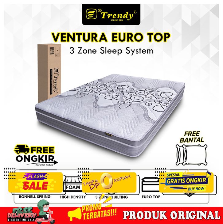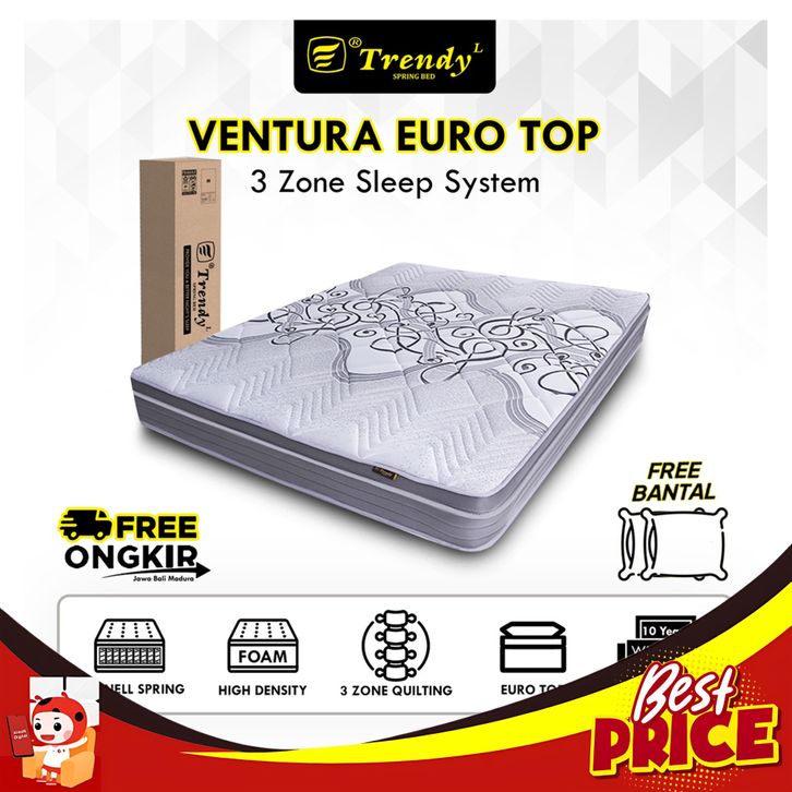 BAGUS TRENDY VENTURA EURO TOP KASUR SPRING BED BONNELL SPRING -VACUUM PRESS ROLL-MATTRESS KASUR DALAM BOX