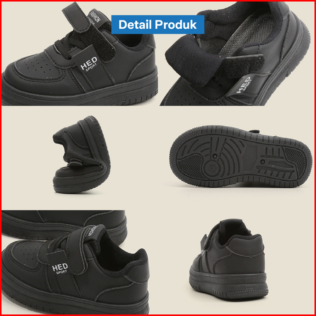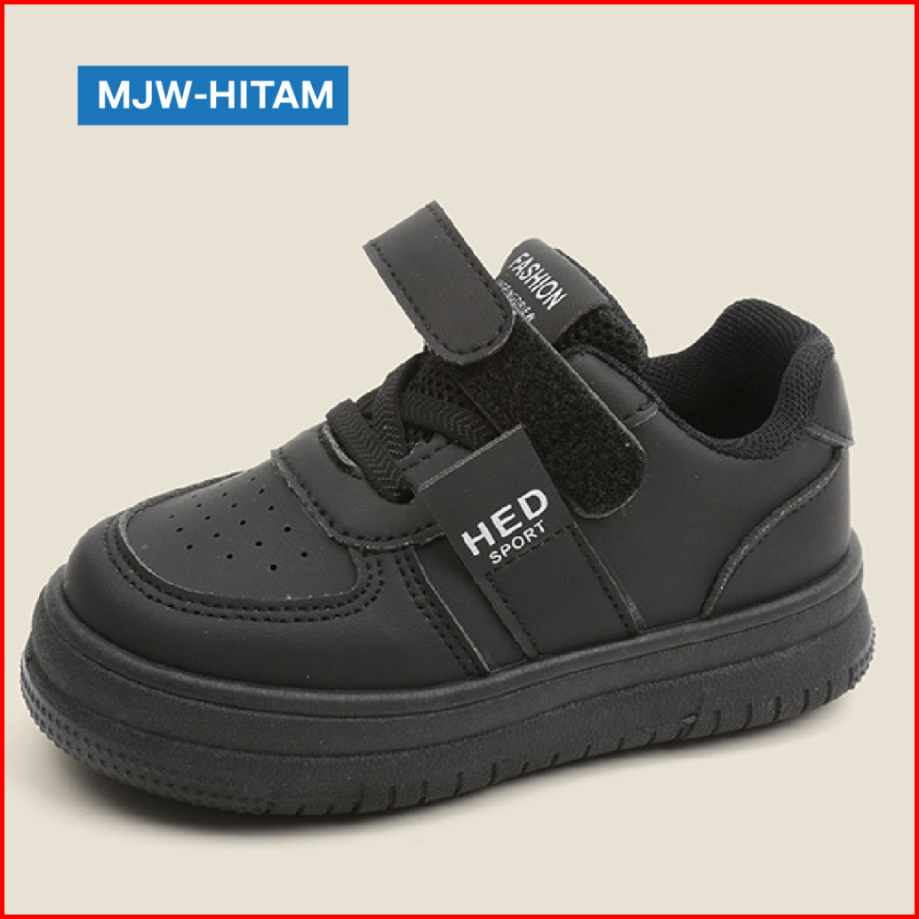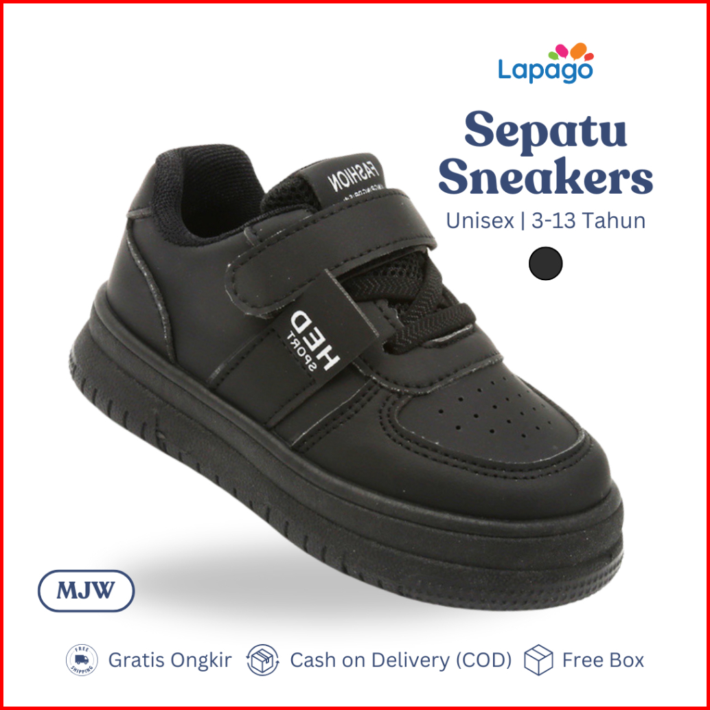 Lapago Free Box Sepatu Sneakers Sekolah Casual Anak Laki Laki Perempuan Hitam Usia 2 - 13 Tahun Type Mjw