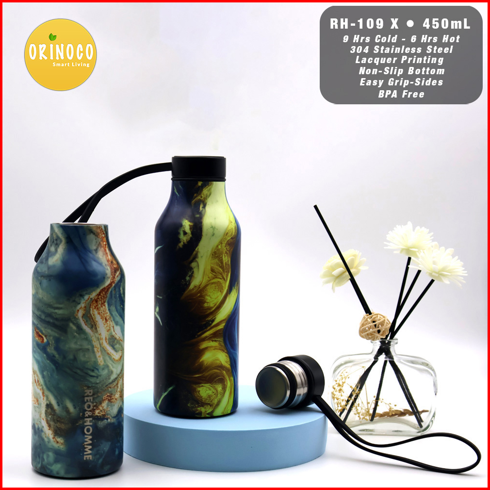 Orinoco Tumbler Double Wall Rh-109 With Silicone Strap 450ml Leakproof Pure Stainless Sus 304