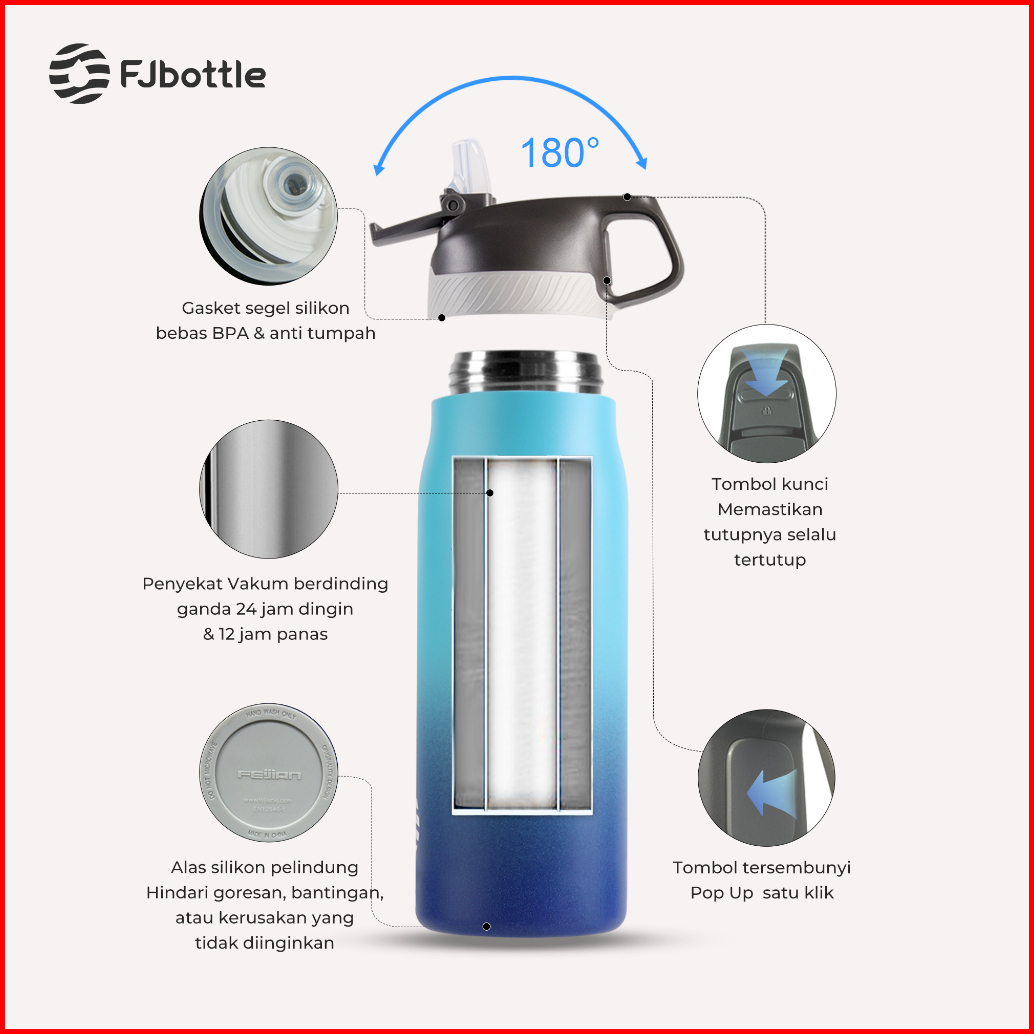 Fjbottle - Sr2138 Botol Minum Olahraga Portable Gradasi 710ml Stainless Steel Double Insulated Bottle Tahan Panas Dan Di