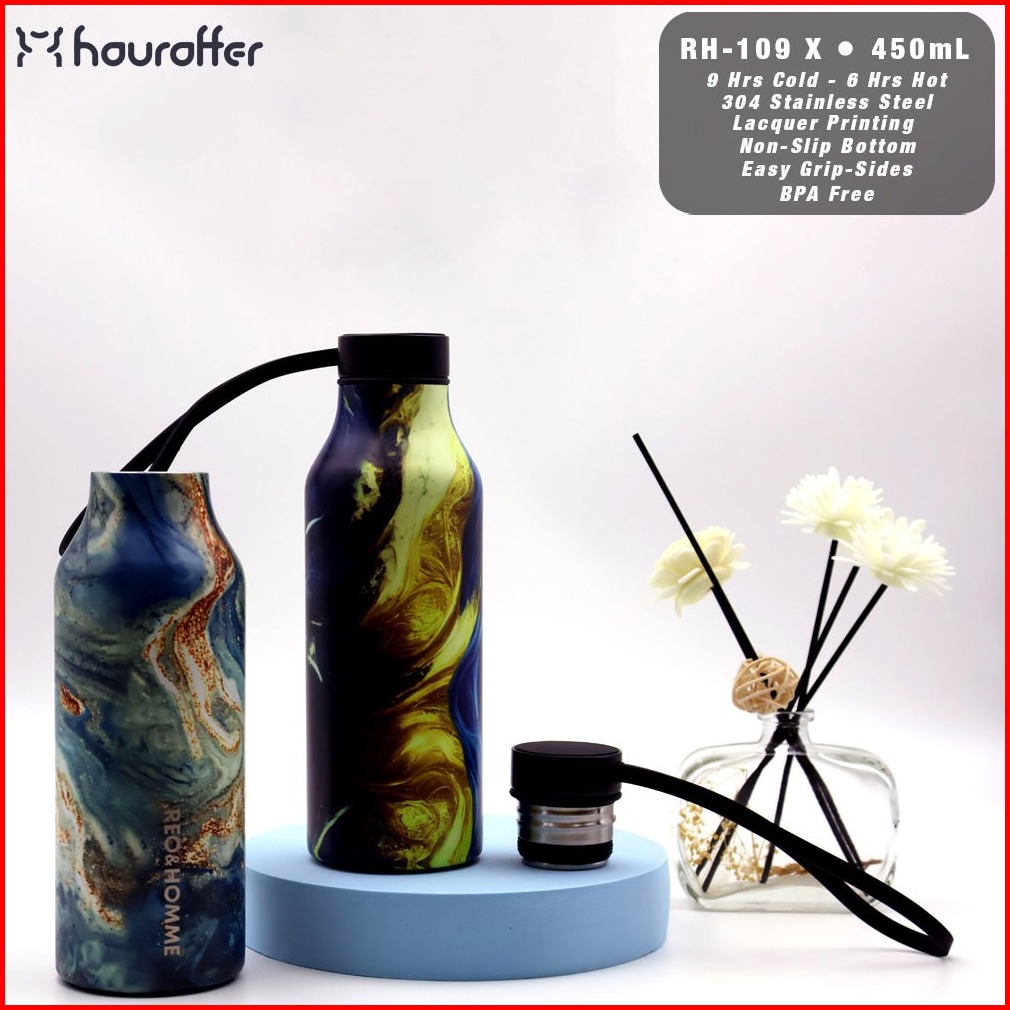 Houroffer Botol Minum Premium Rh-109 X Tumbler With Silicone Strap 450 Ml Tahan Panas Dingin