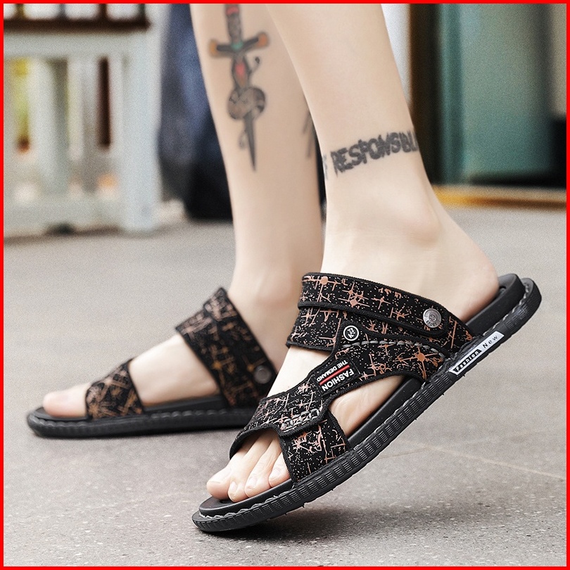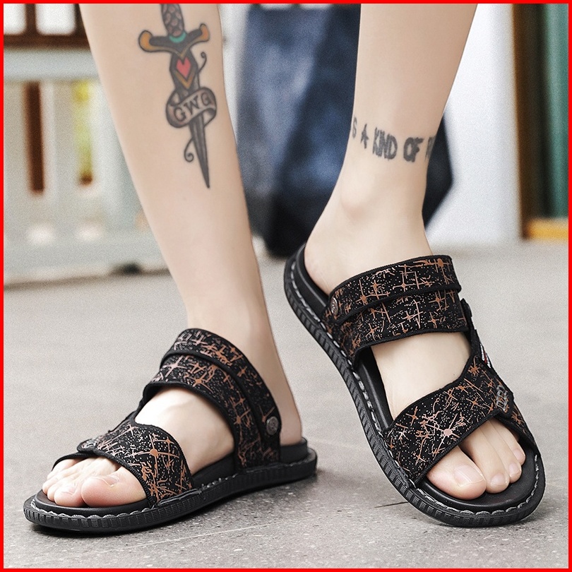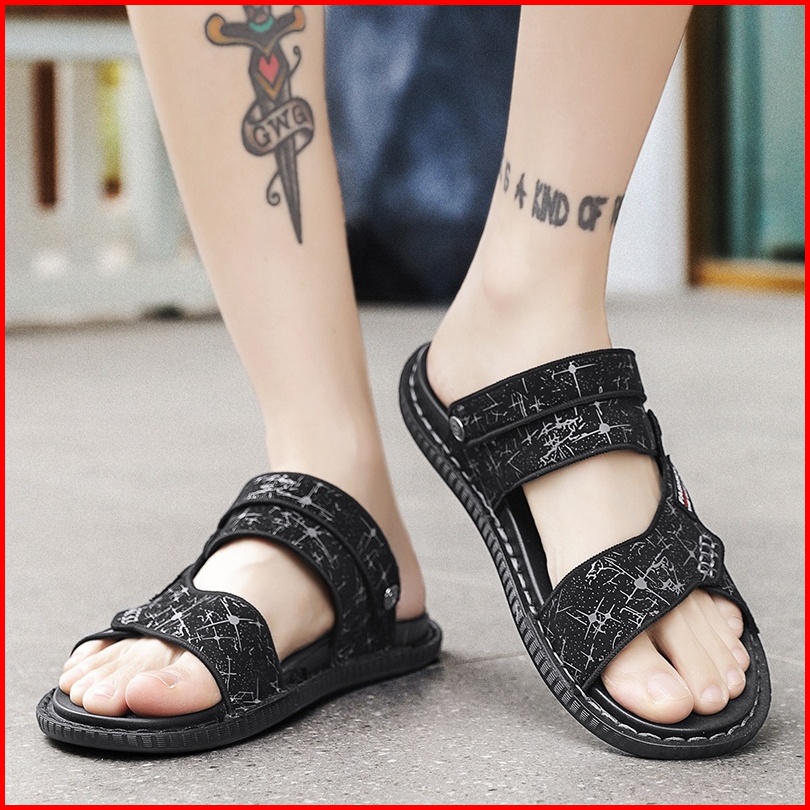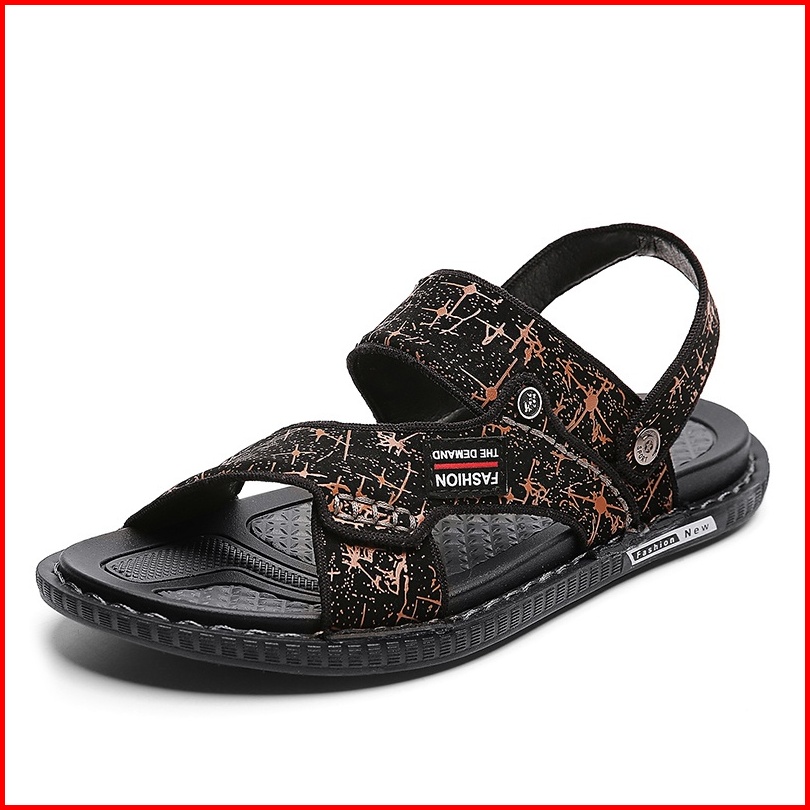 Sendal Pria Sandal Cowok Sandal Kulit Tahan Air Non-slip Sol Karet Sandal Hitam Casual Size 39-44
