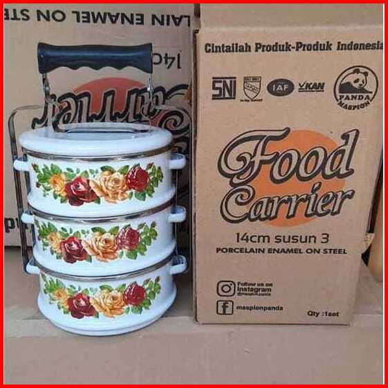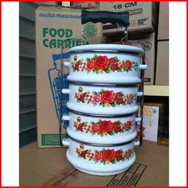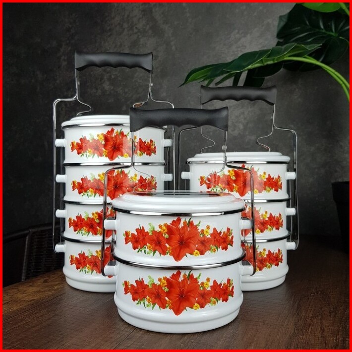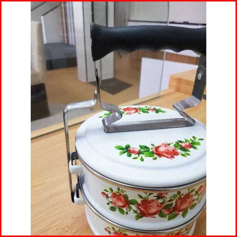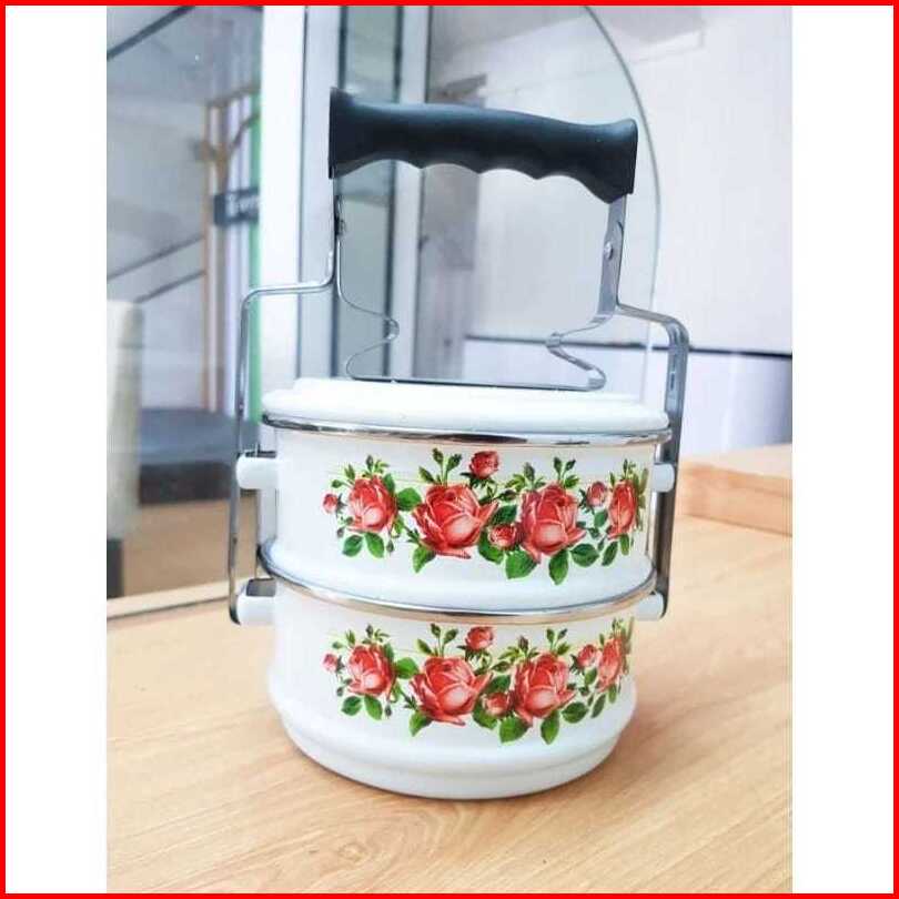 Rantang Enamel Bunga Susun 2 3 Dan 4 Layer Food Carrier Bahan Enamel Motif Random