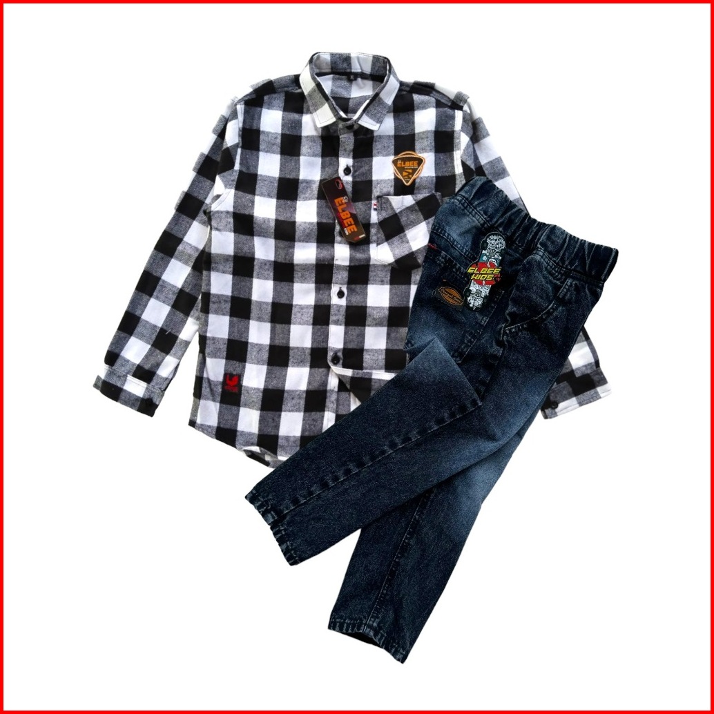 Elbee Kids Setelan Anak Anak Premium Setelan Anak Anak Murah Setelan Kemeja Flanel Celana Jeans
