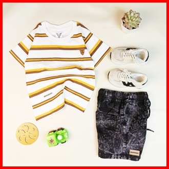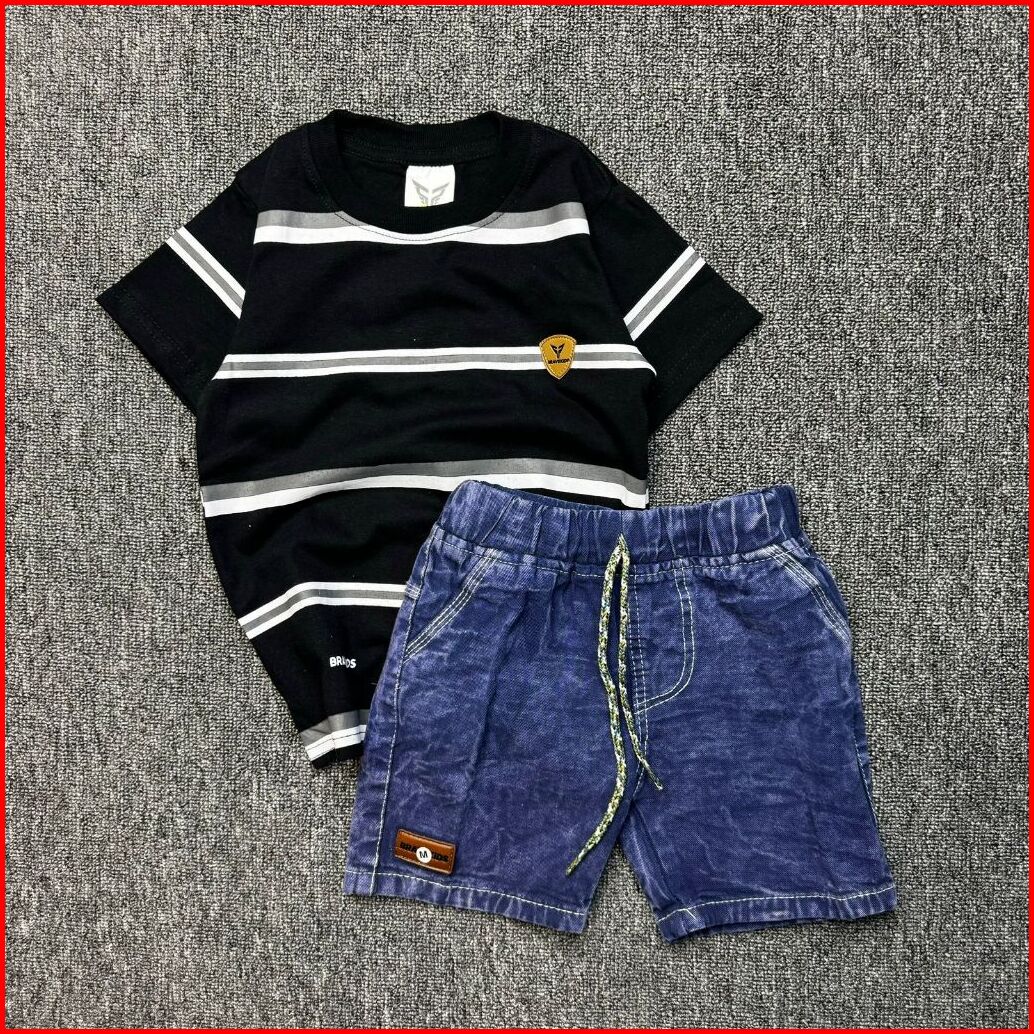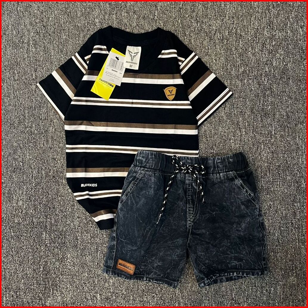 Bravekids - Setelan Kaos Anak Cotton Combed Salur Dan Celana Jeans Denim Cotton Combed 24s