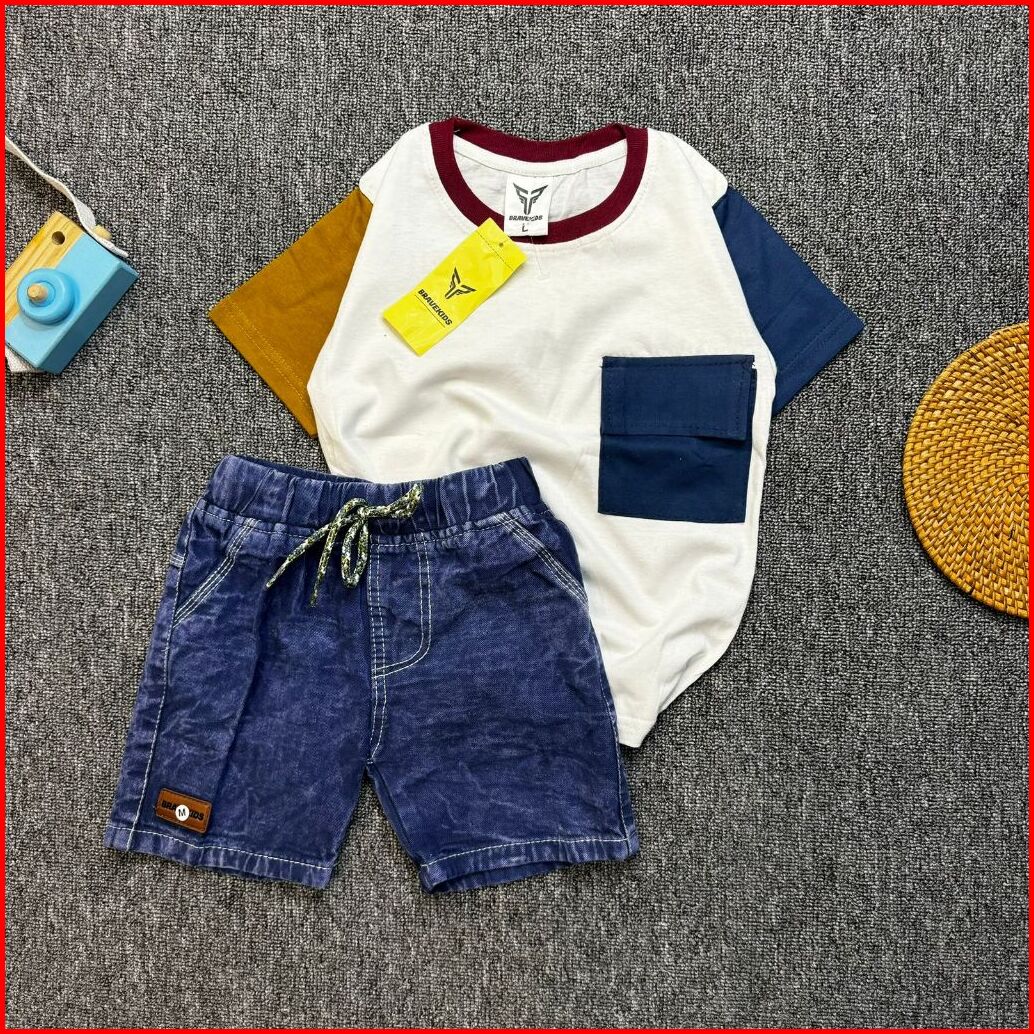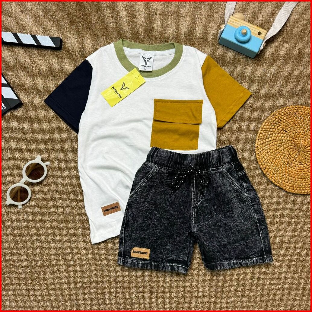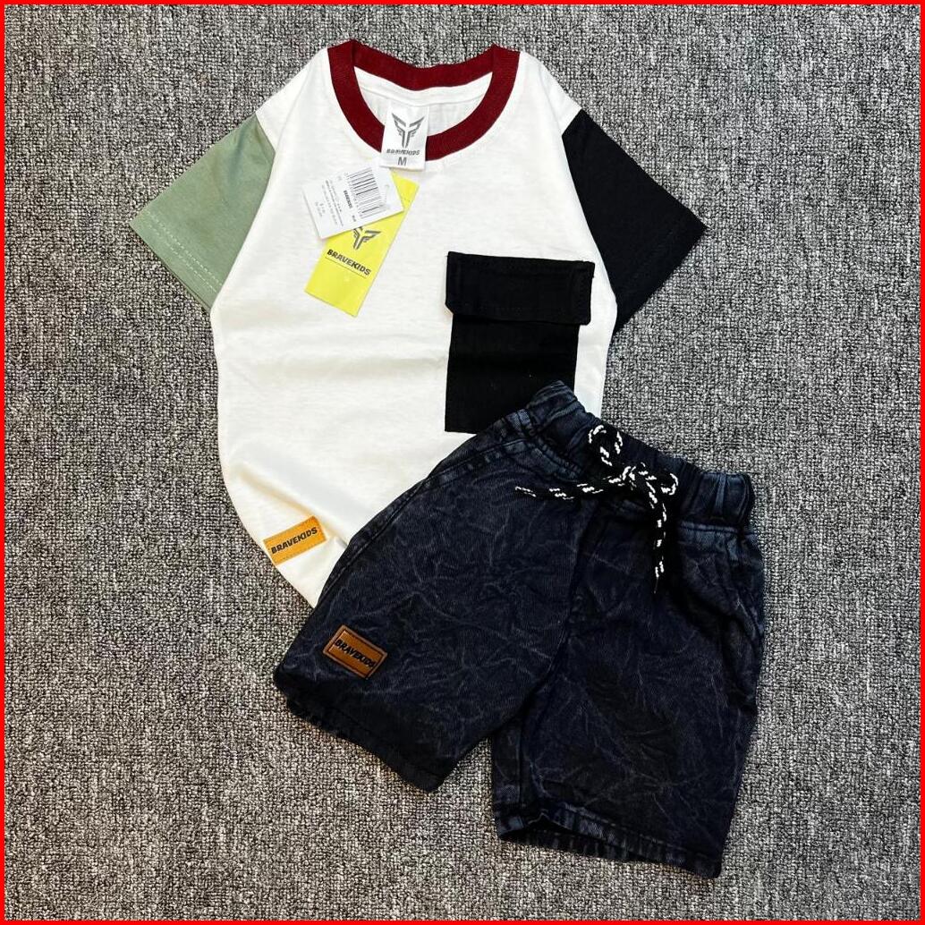 Bravekids - Three Tone Pocket Setelan Anak Cotton Combed 30s Celana Denim