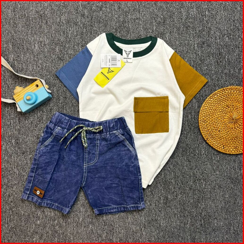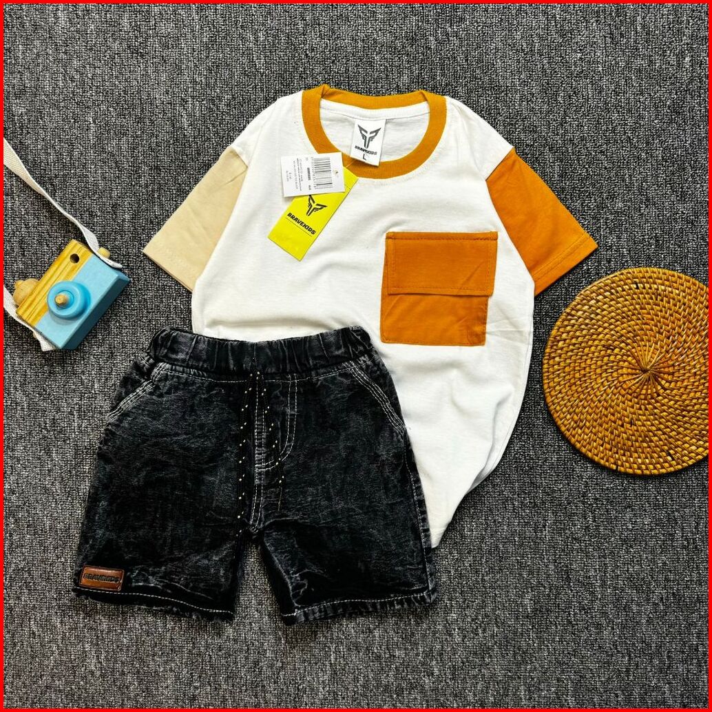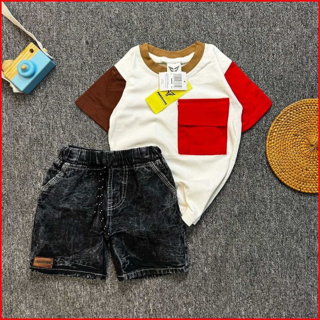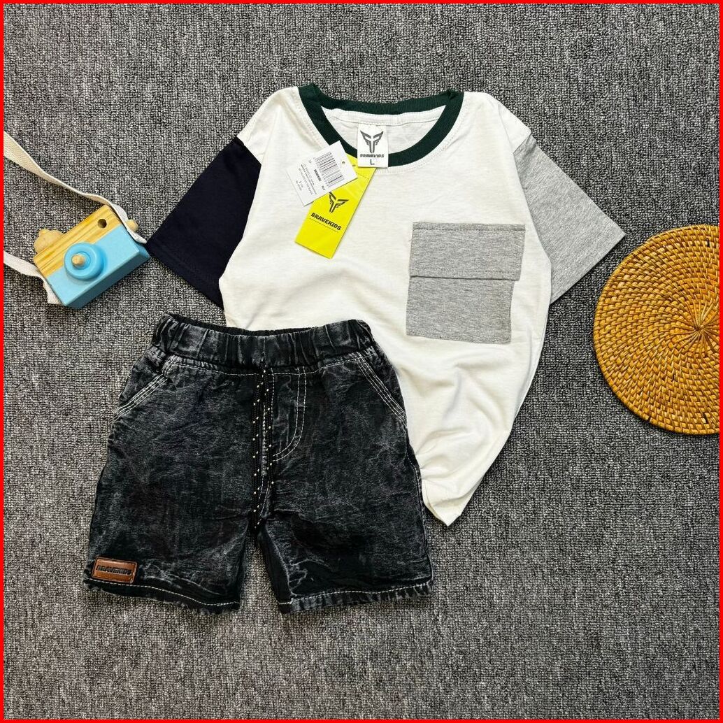 Bravekids - Three Tone Pocket Setelan Anak Cotton Combed 30s Celana Denim