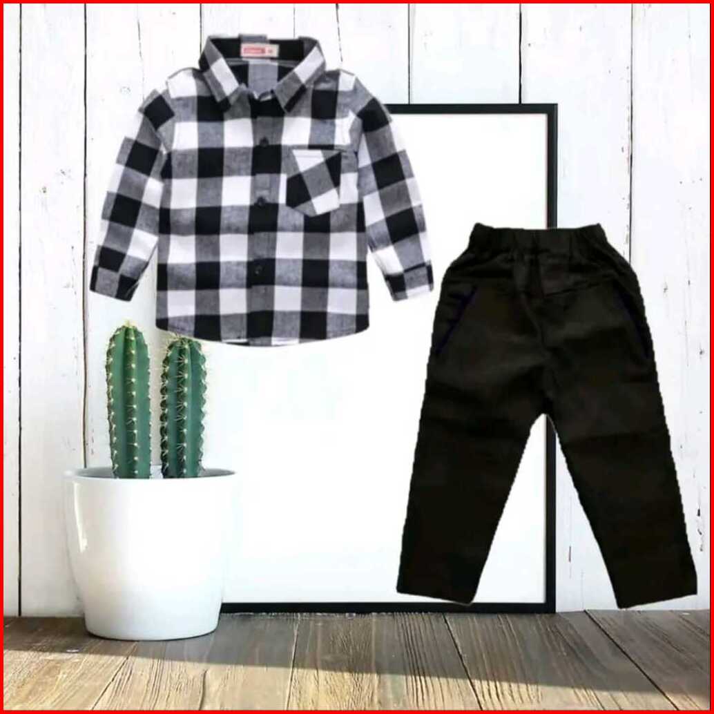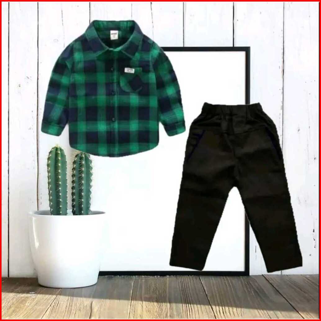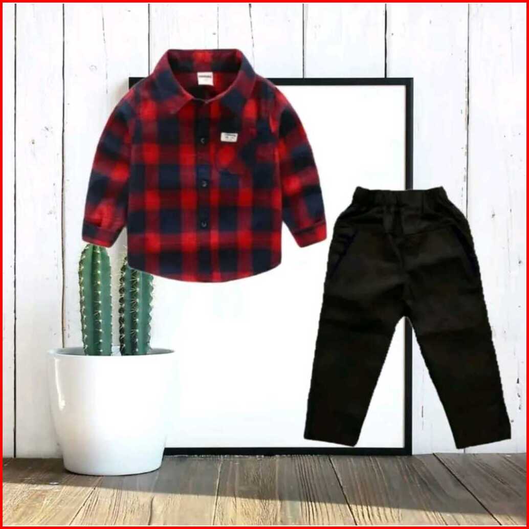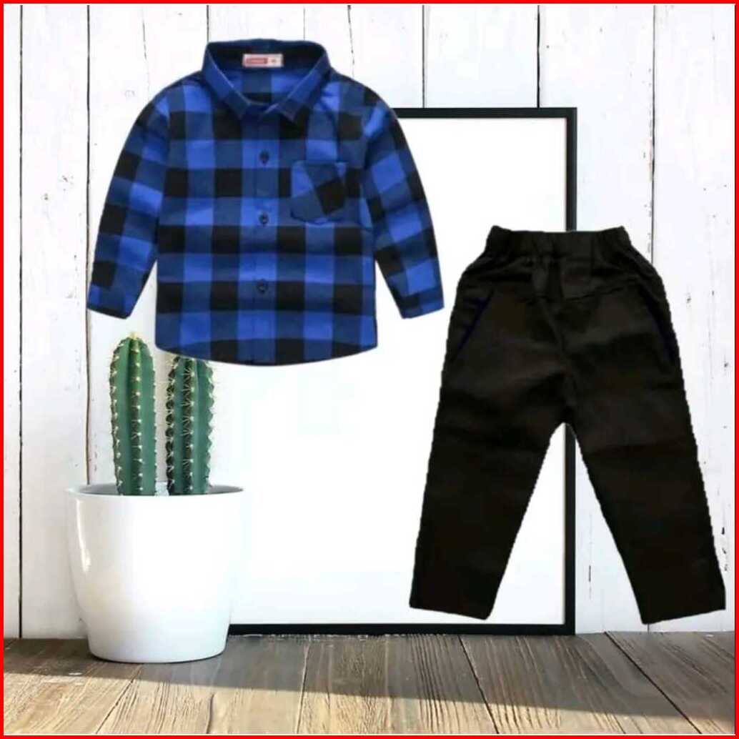 Setelan Kemaja Flanel Anak Terbaru One Set Kemeja Anak Laki-laki Model Kekinian