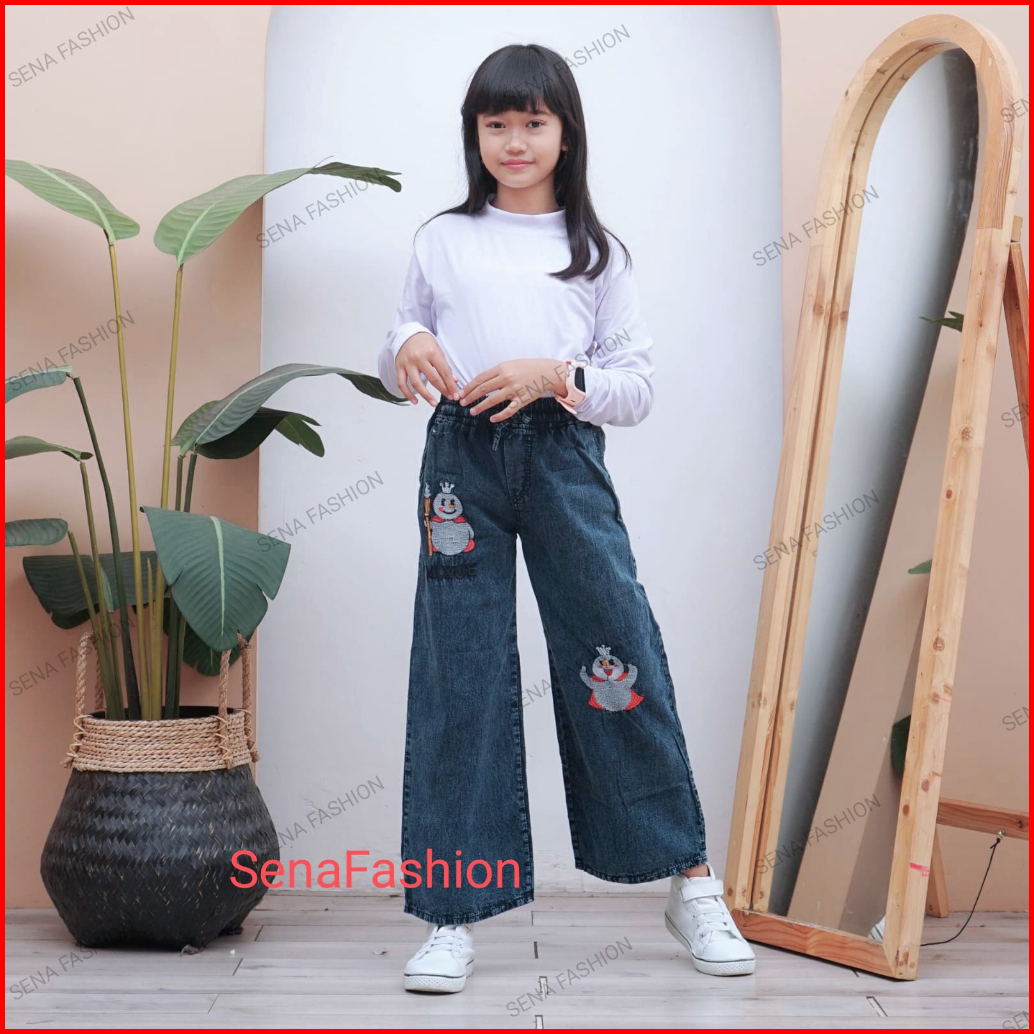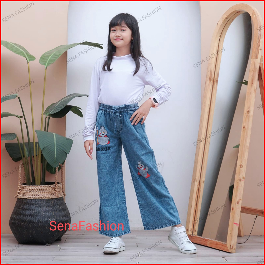Celana Kulot Jeans Anak Perempuan Bordir Mixue 2-14 Tahun