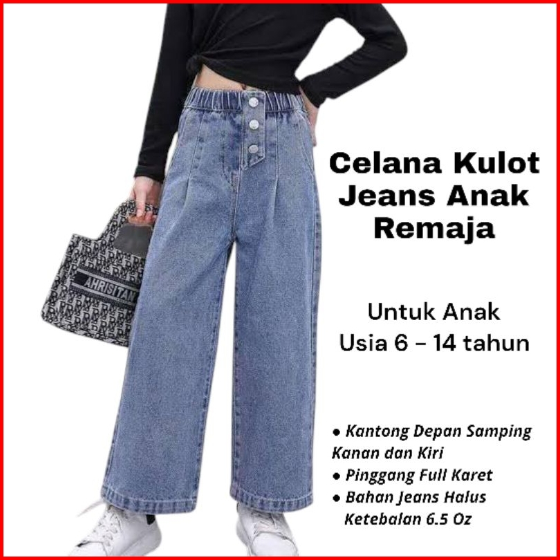 Celana Kulot Jeans Anak Remaja Perempuan Usia 6-15 Tahun Kids Denim Palazzo Girls