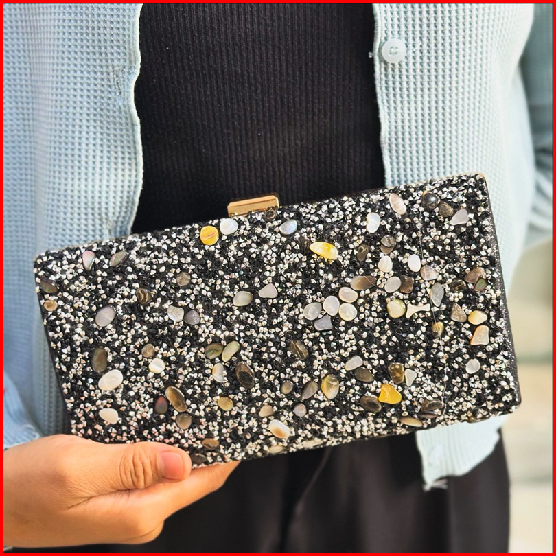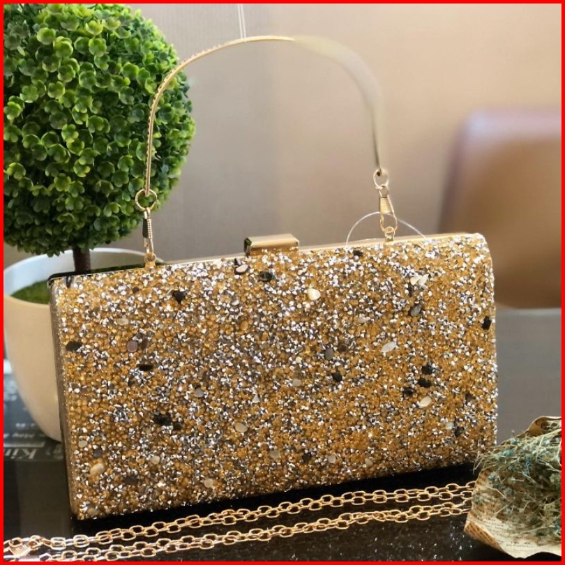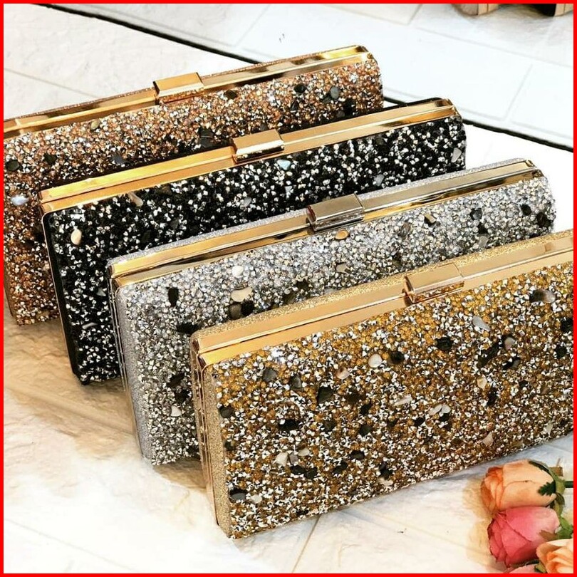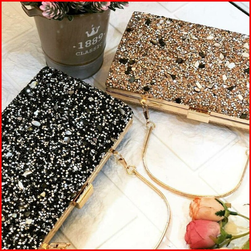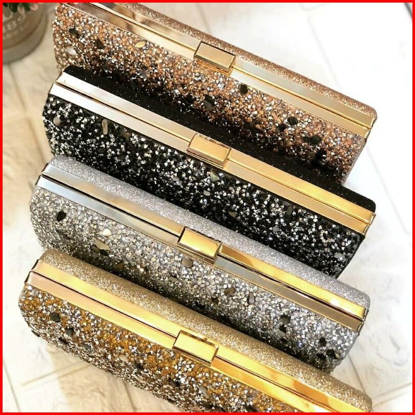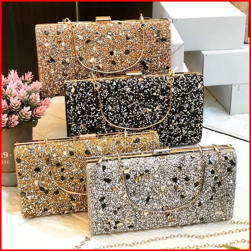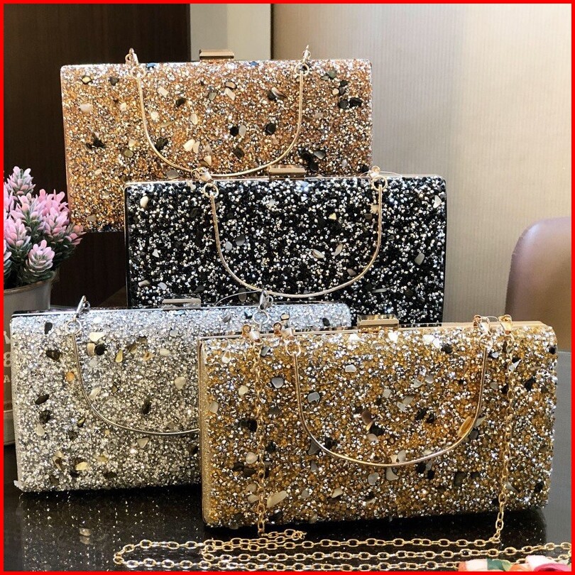 Tas Pesta Valentina Embellished Crystal Box Clutch
