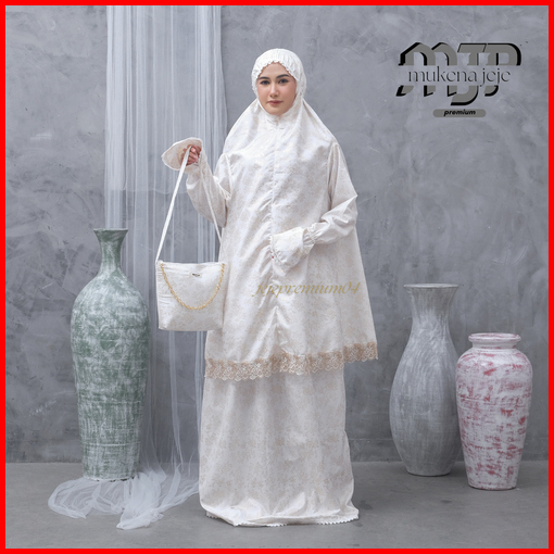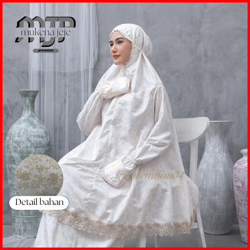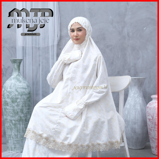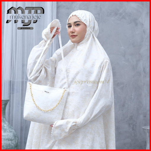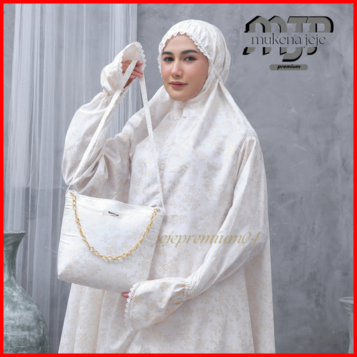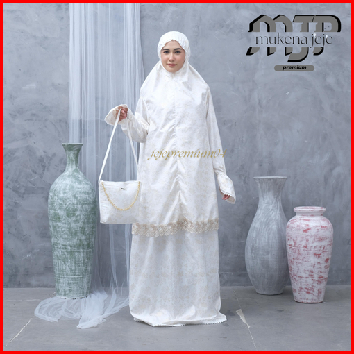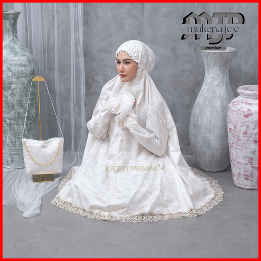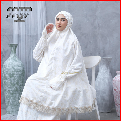 Jeje Premium - Mukena Berlengan Haji Umroh Katun Foil Prada Premium Jumbo Renda Zipper Mewah
