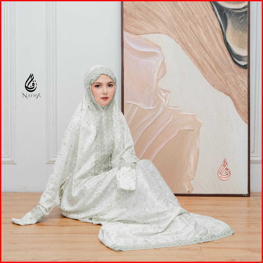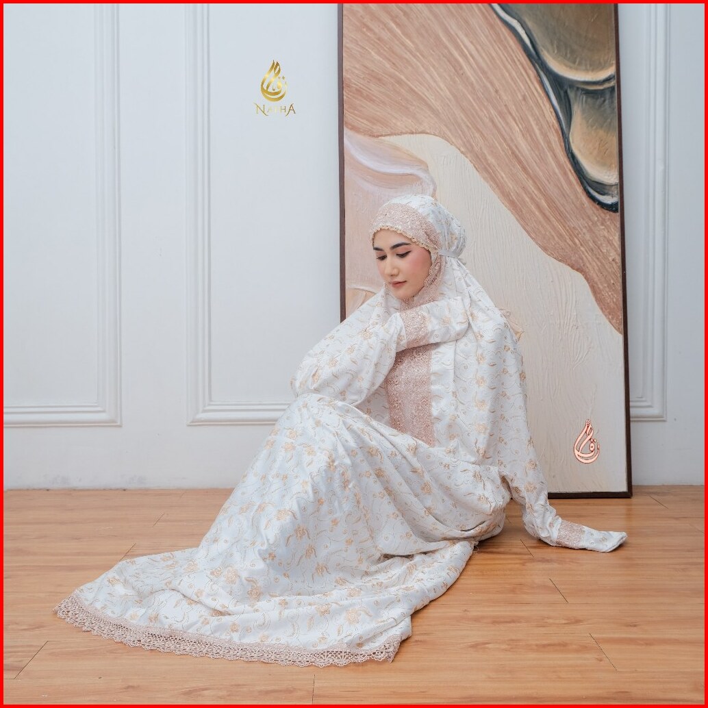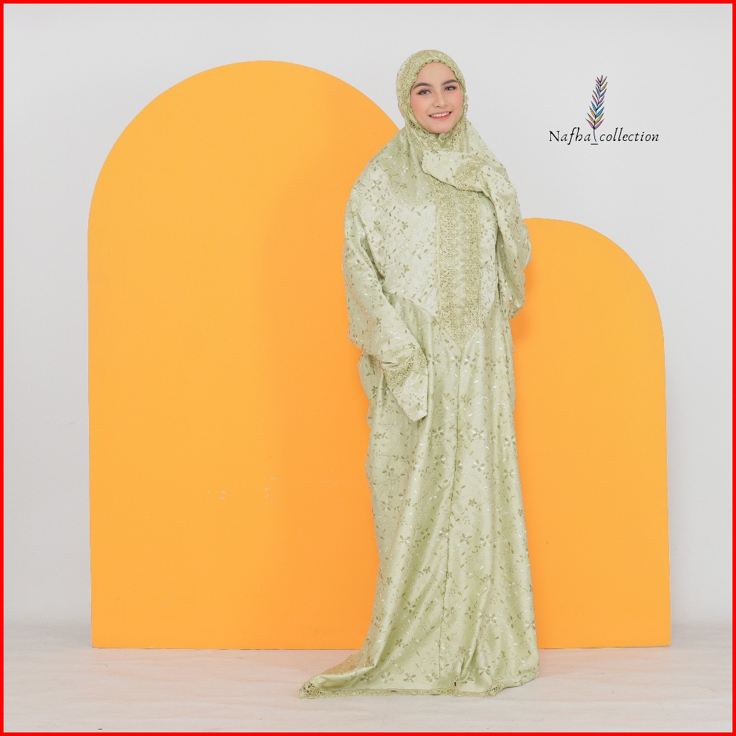 Nafha - Mukena Terusan Sutra Paris Prada Renda Mukena Lajuran