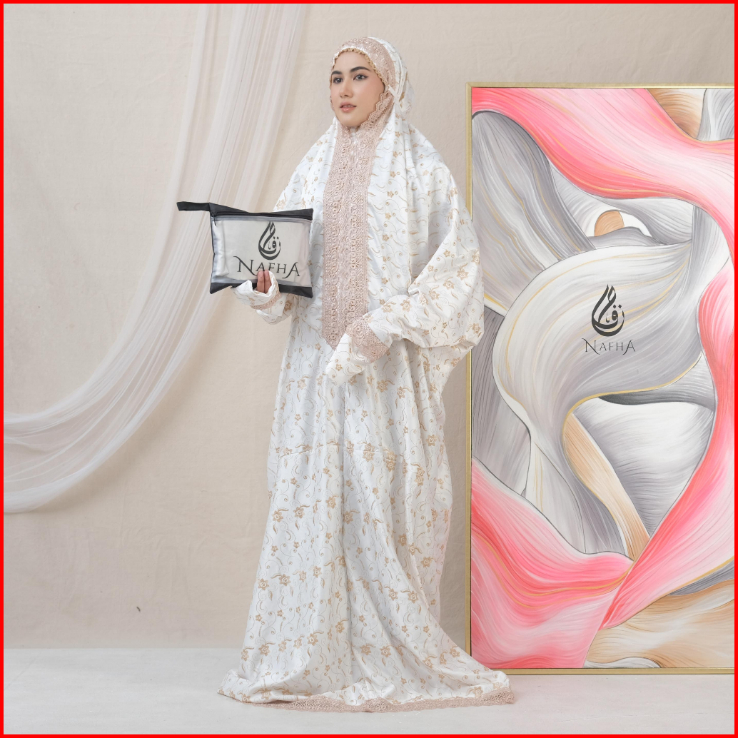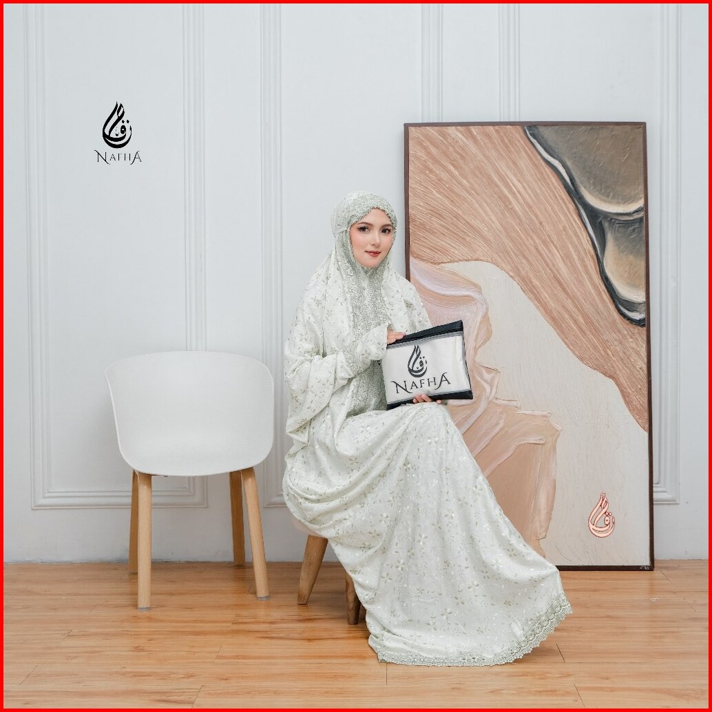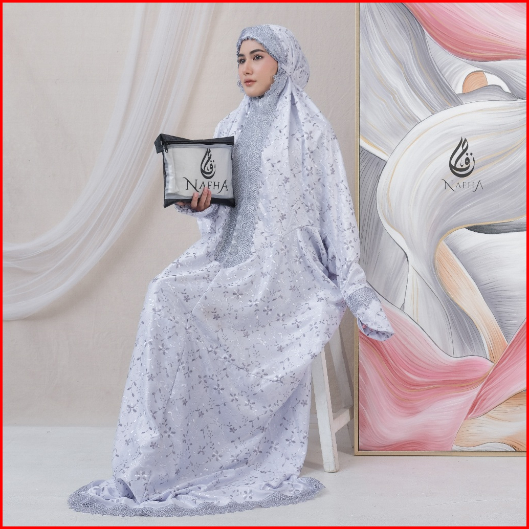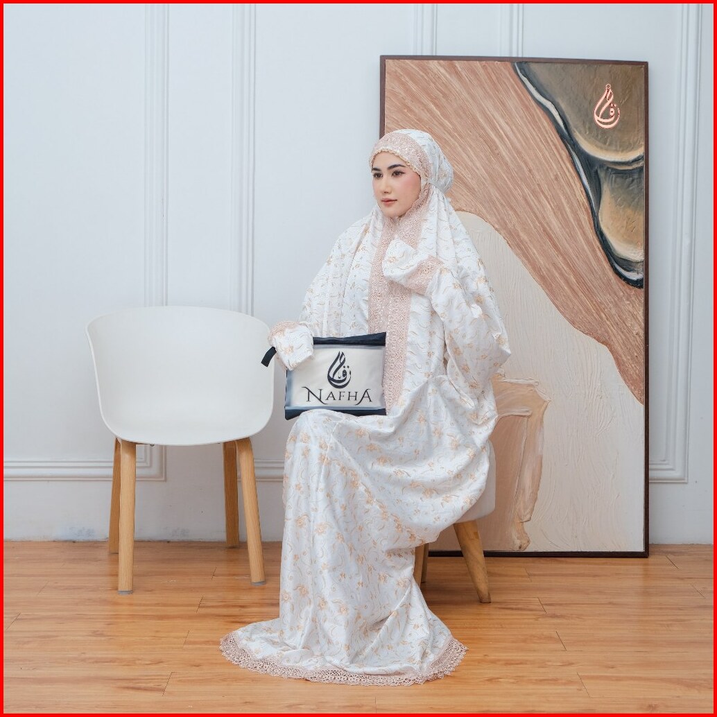 Nafha - Mukena Terusan Sutra Paris Prada Renda Mukena Lajuran