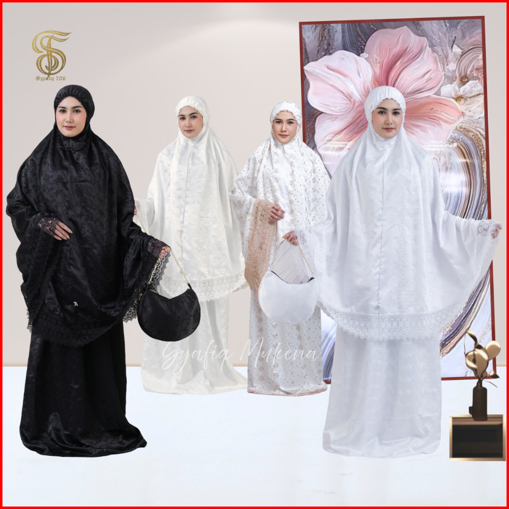 Syafiq Mukena Dewasa Premium Sutra Bordir Mewah Serangkai Melati Series Syafiq Mukena