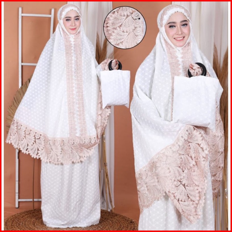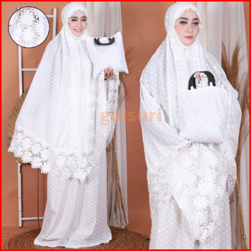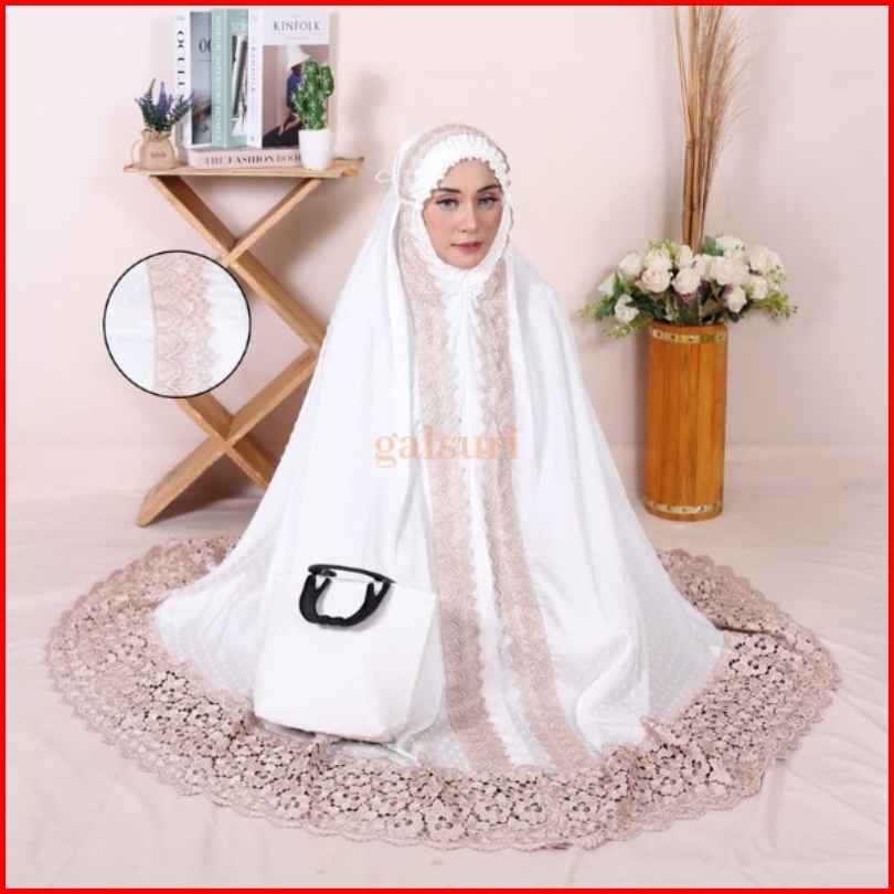 Mukena Dewasa Katun Paris Putih Renda Telekung Perlengkapan Sholatl