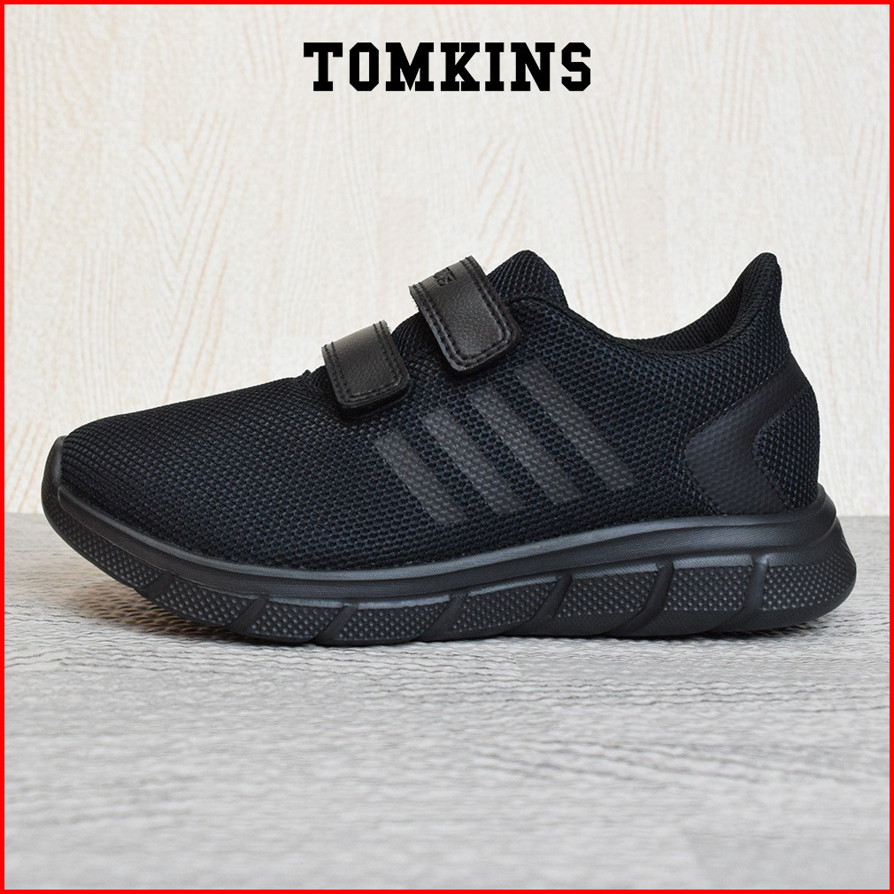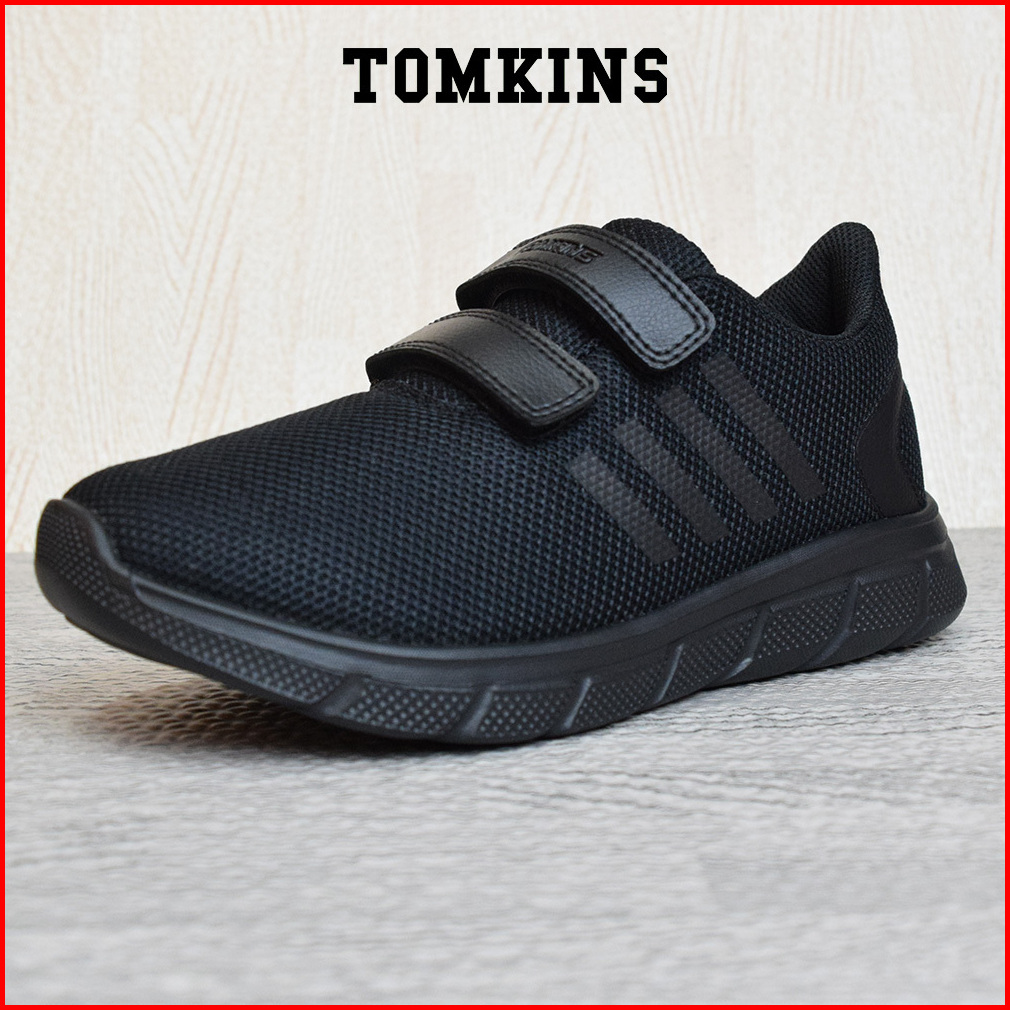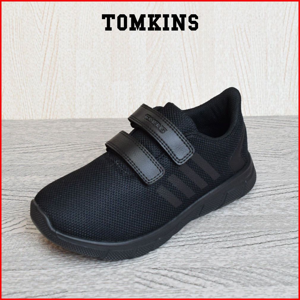 Tomkins Ragmen - Black Sepatu Sekolah Velcro Anak Remaja
