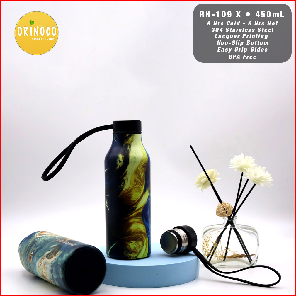 Orinoco Botol Termos Rh-109 With Long Silicone Strap 450ml Tumbler Stainles Tahan Panas Dingin