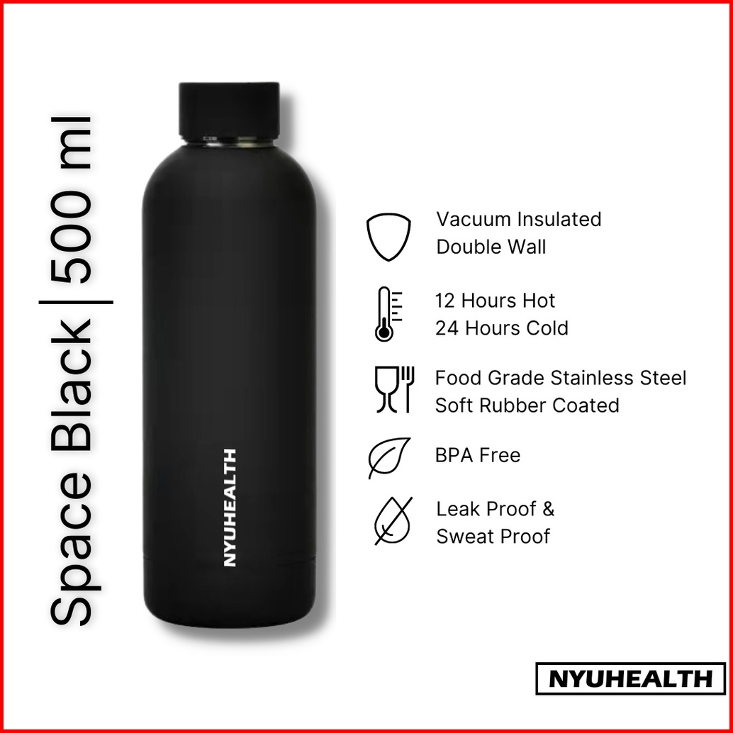 Nyuhealth Botol Minum Tumbler Stainless Steel Vacuum Flask Warna Space Black 500ml