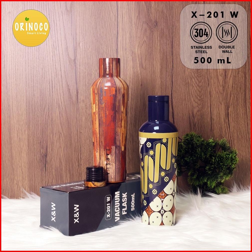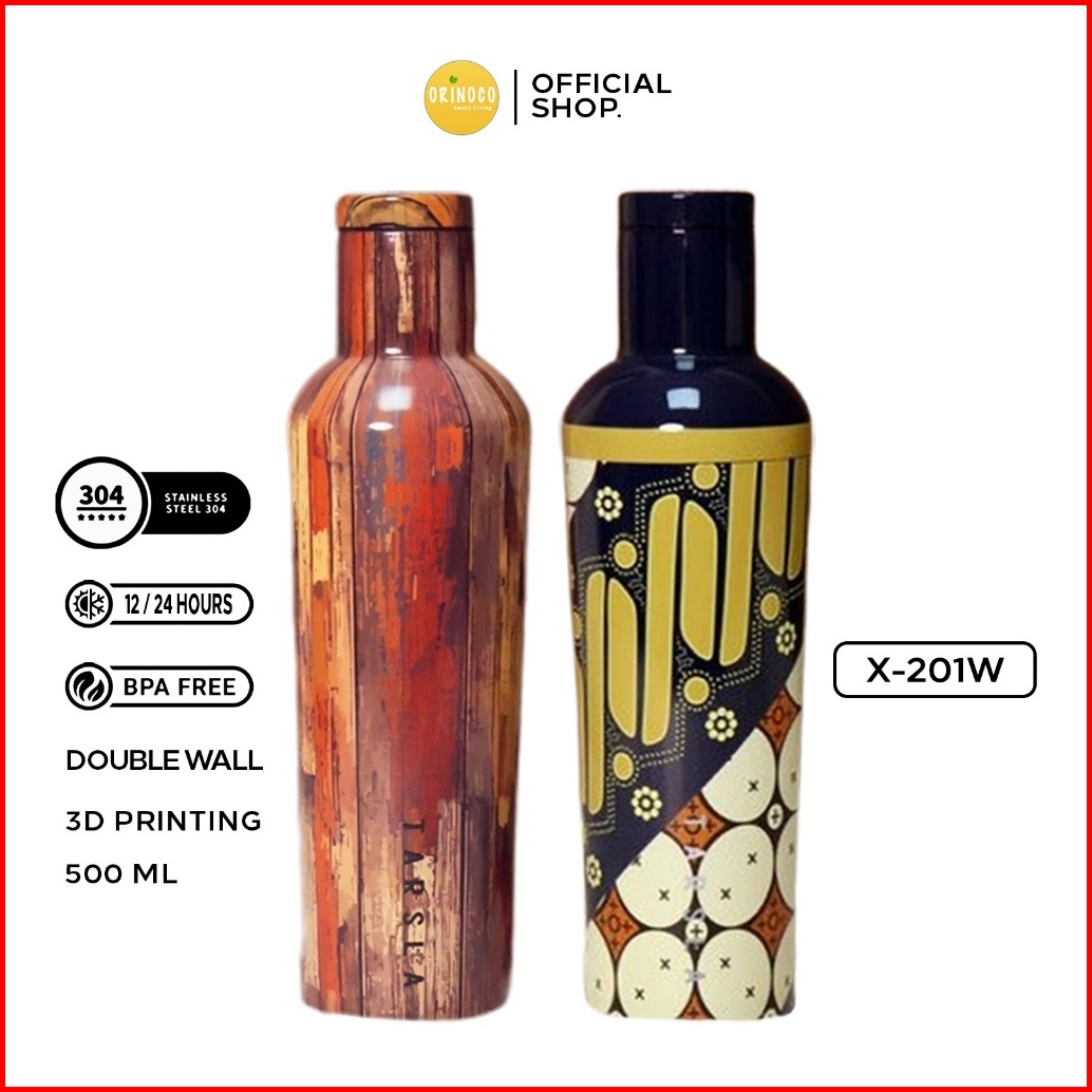 Orinoco Tumbler Motif Wooden Batik Parang Kawung 500 Ml Panas Dingin 12 Jam X-201w Non Slip Bottom