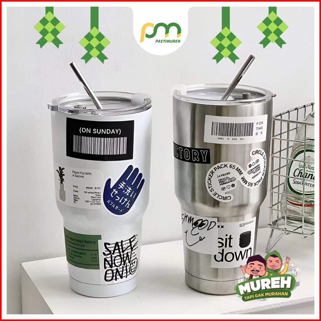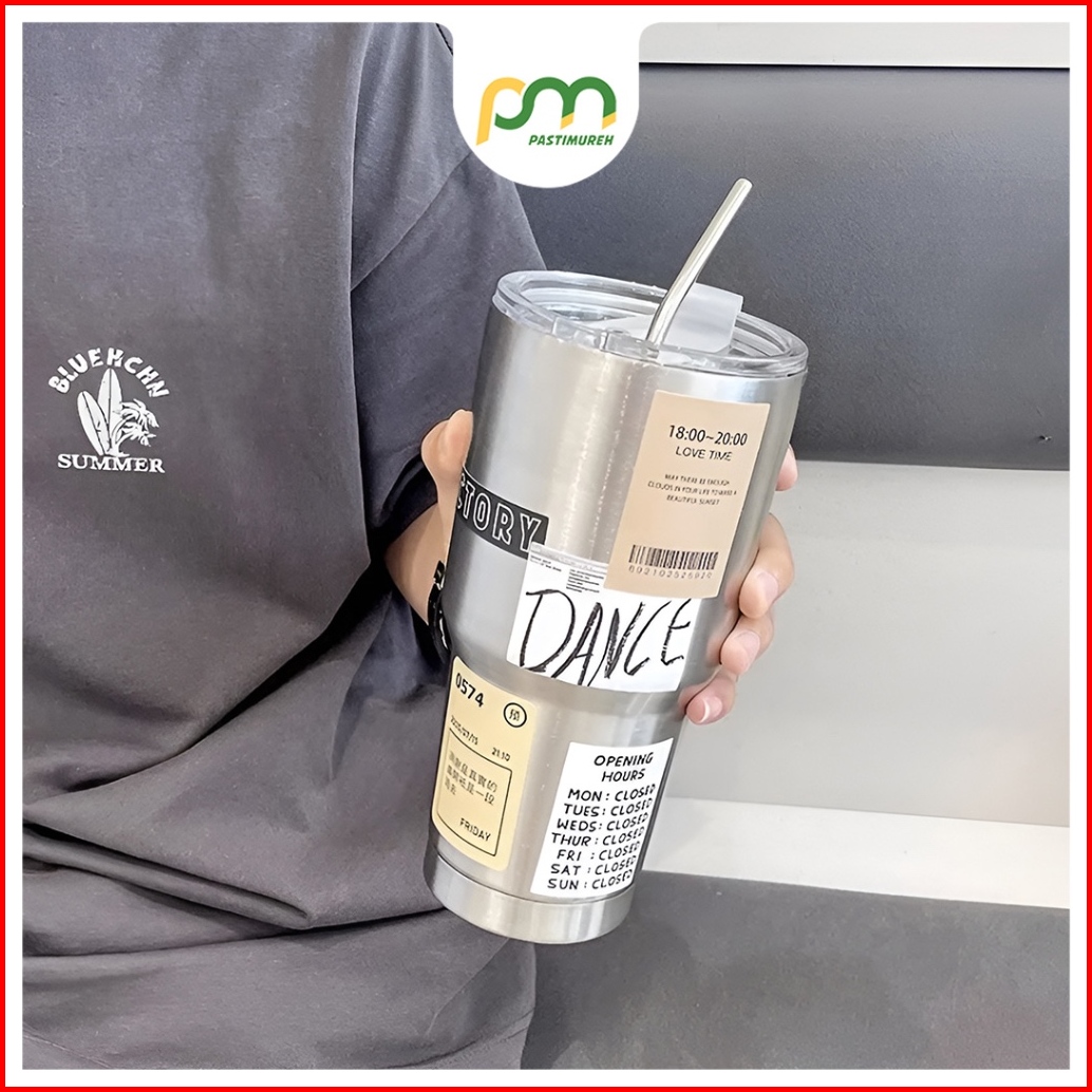 Pastimureh Nomu - Tumbler Kopi Stainless Steel Botol Minum Aesthetic Termos Portable Tumbler Minum Botol Minum Tahan Pan