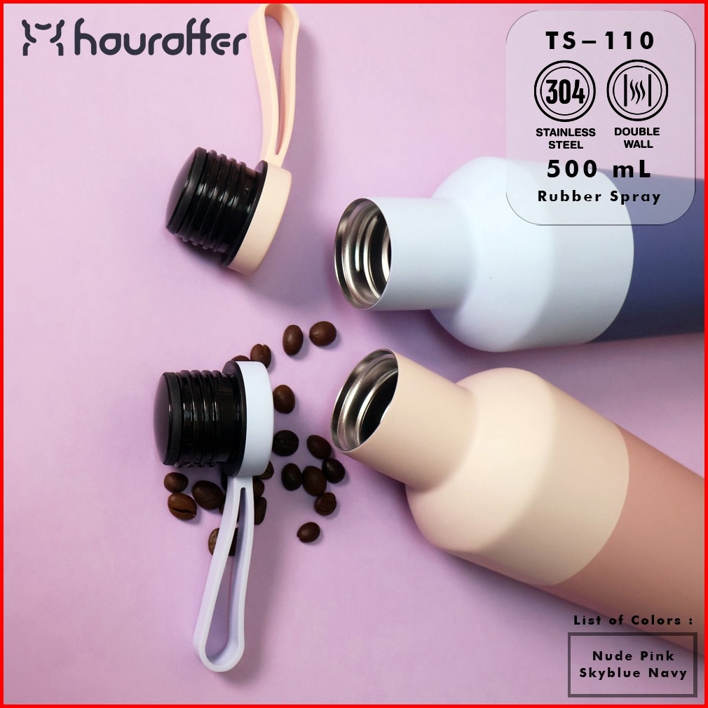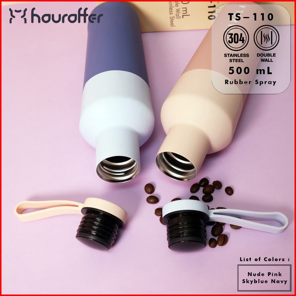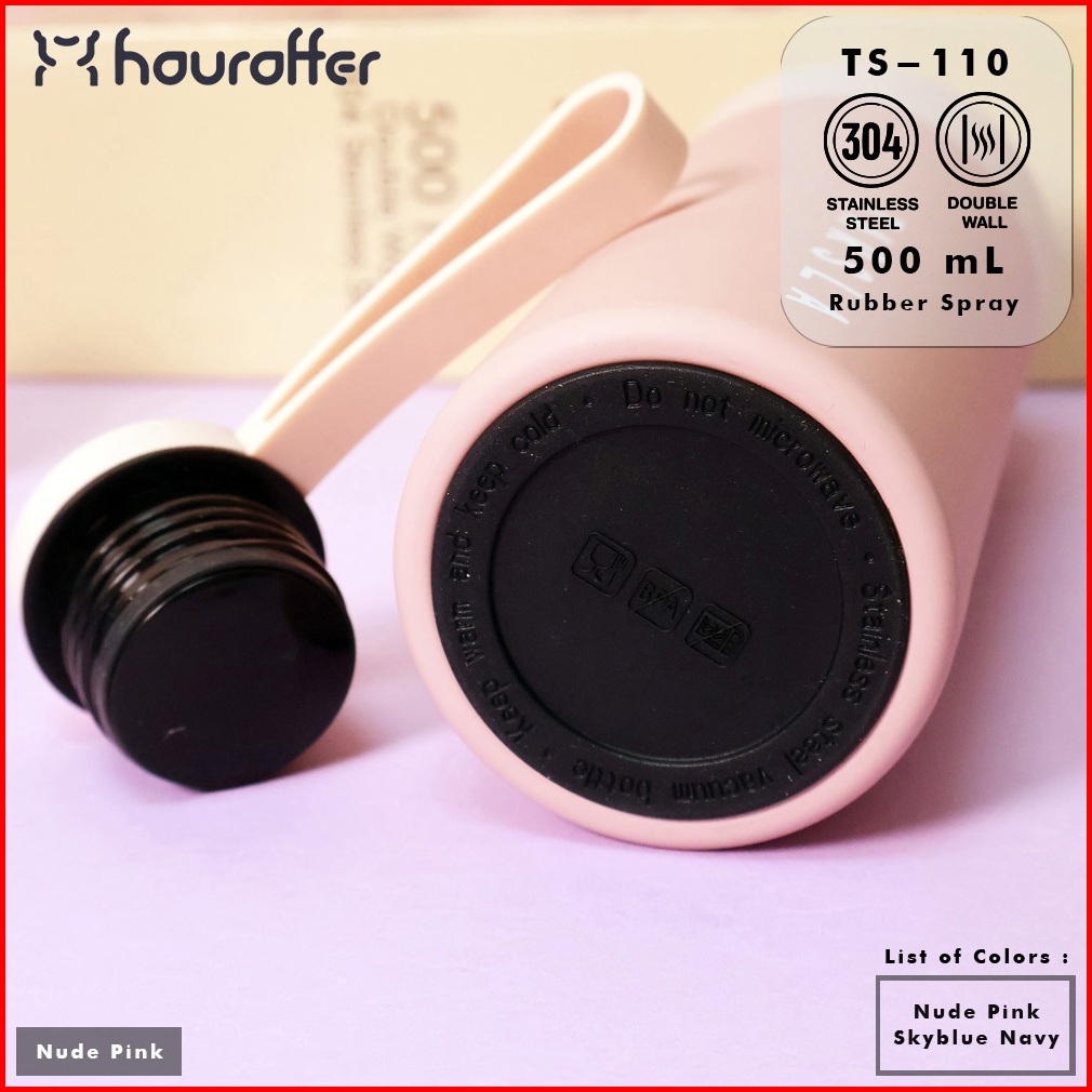 Houroffer Botol Minum Thermos Ts-110 Tumbler Stainless Rubber Spray Hot Cold 500ml