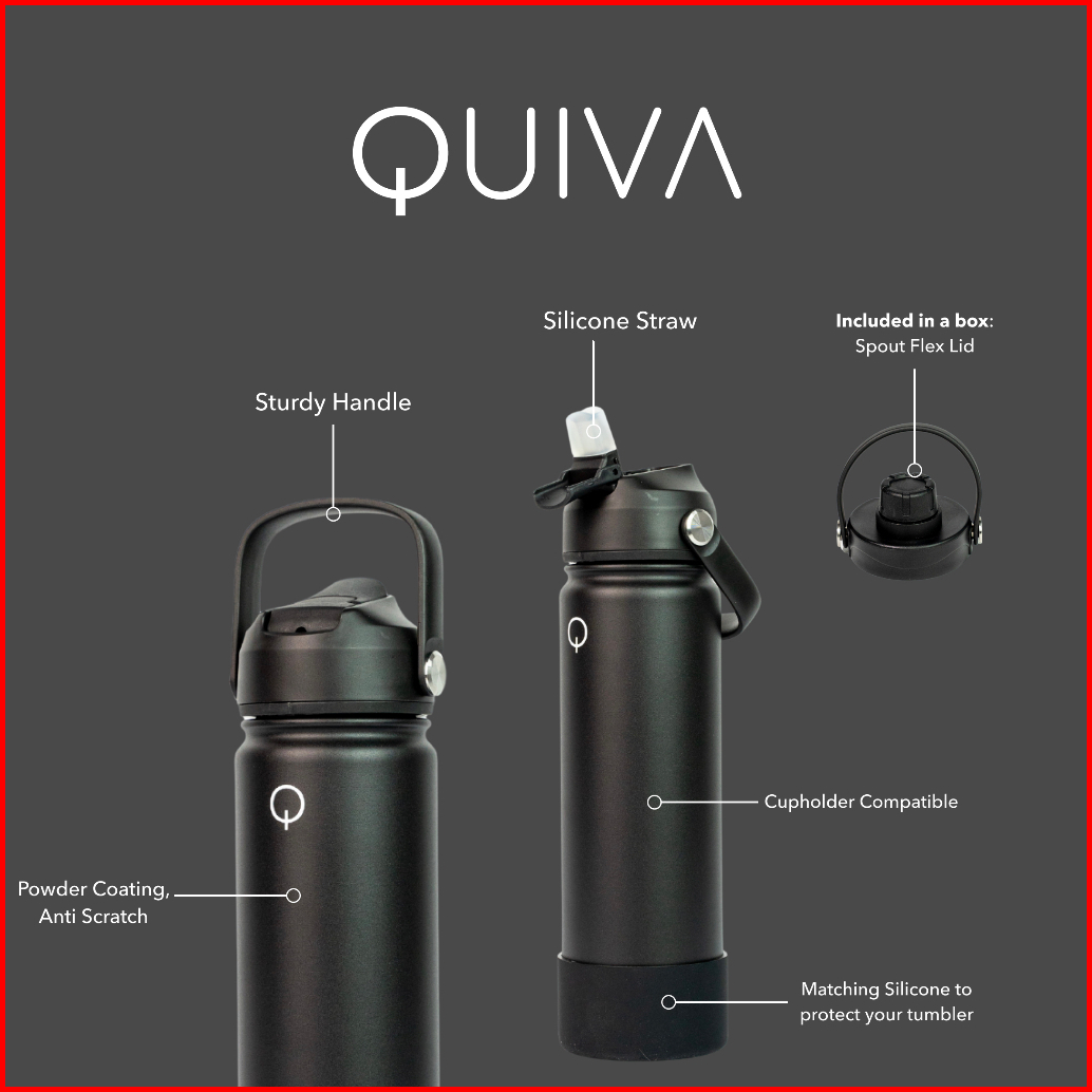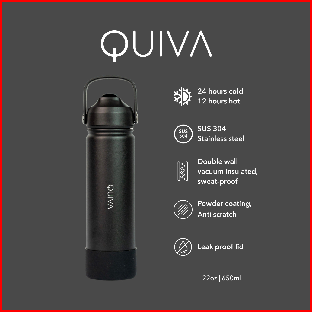 Quiva Tumbler Vacuum Flask 650ml 22oz - Black - Quench - Stainless Steel Double Wall Vacuum Insulated Botol Minum Thermo