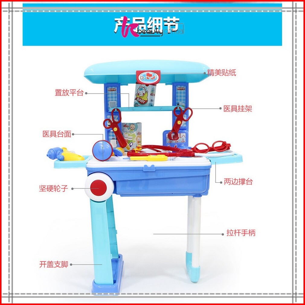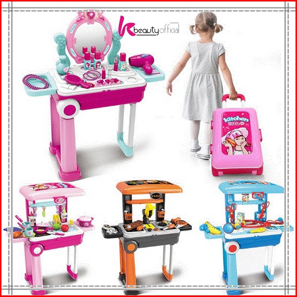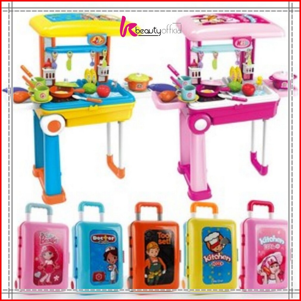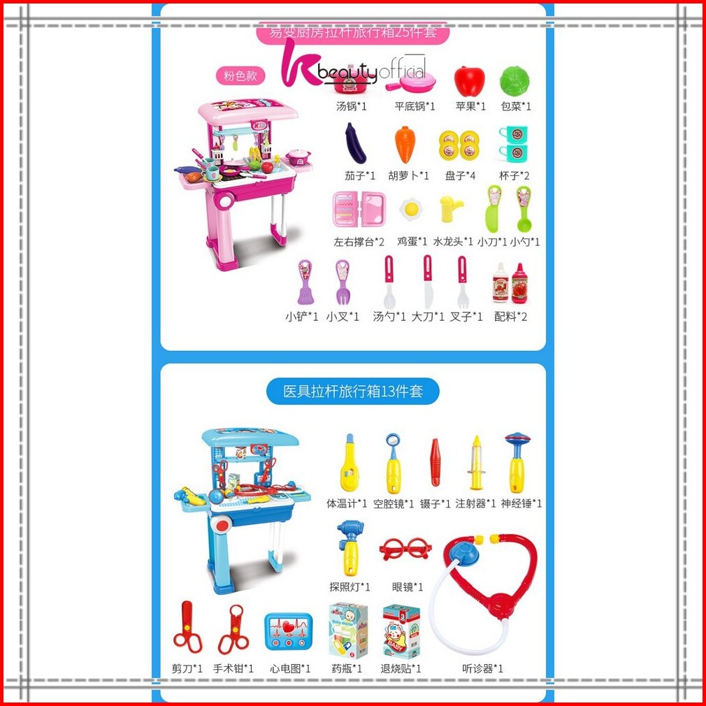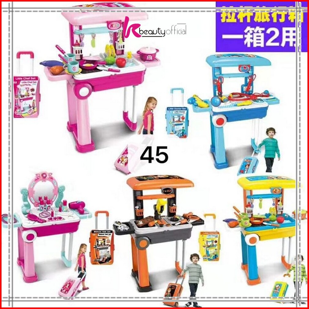 Kb-m37 Mainan Anak Koper Dorong 2in1 Kitchen Set Make Up Set Dokter Set Perkakas Set