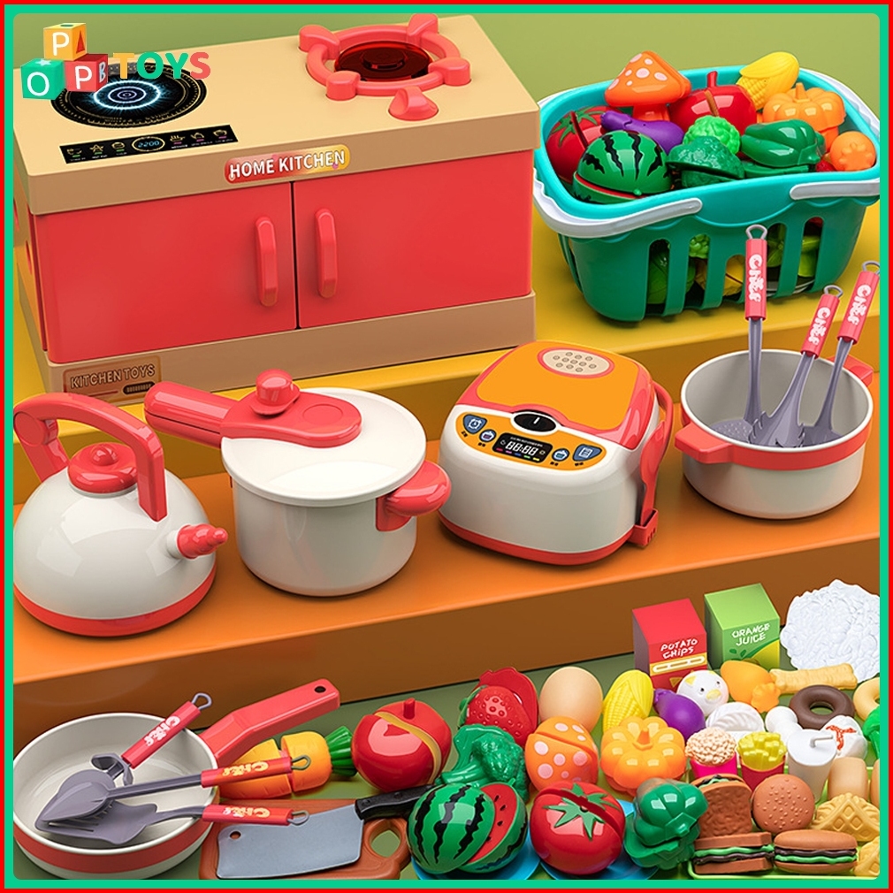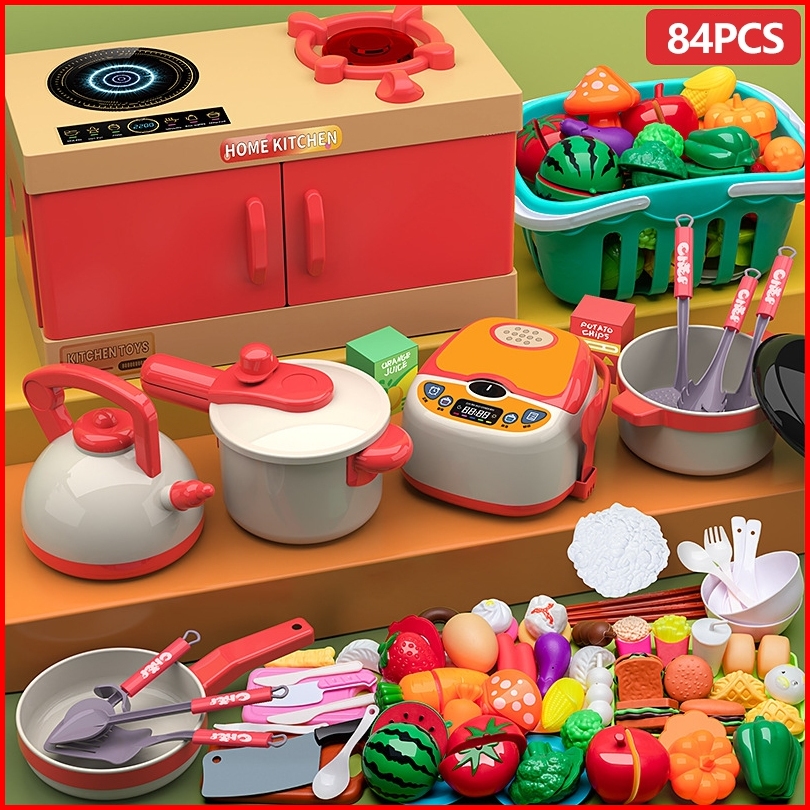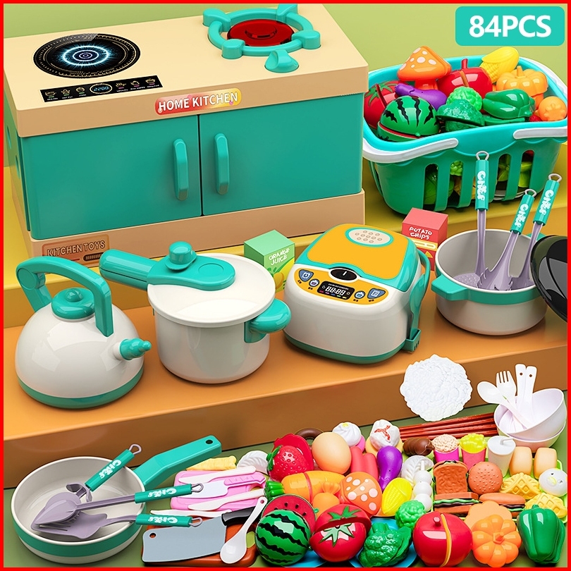 Poptoys 33 56 84 Pcs 3-6 Tahun Mainan Kitchen Set Mainan Potong Buah Mainan Masak Perempuan Anak Hadiah