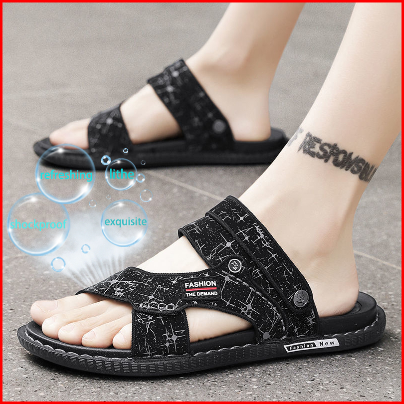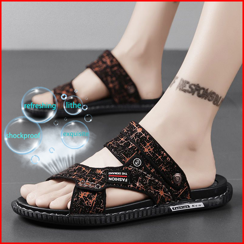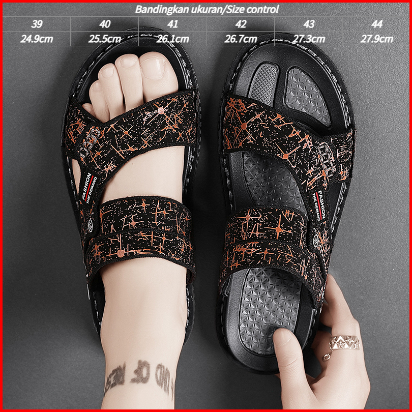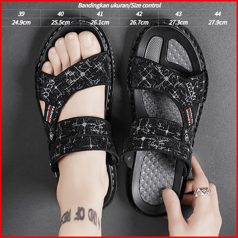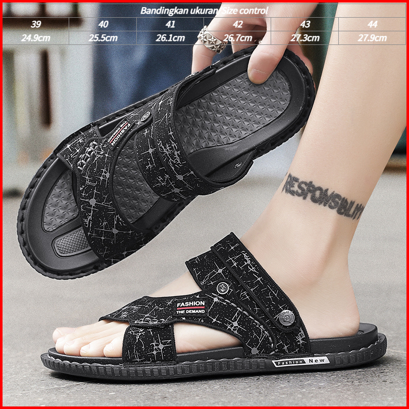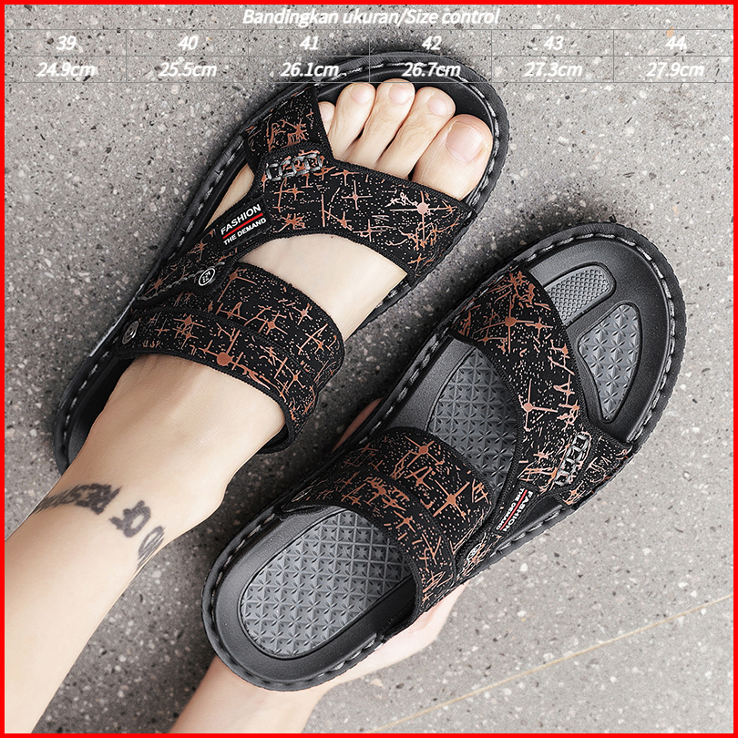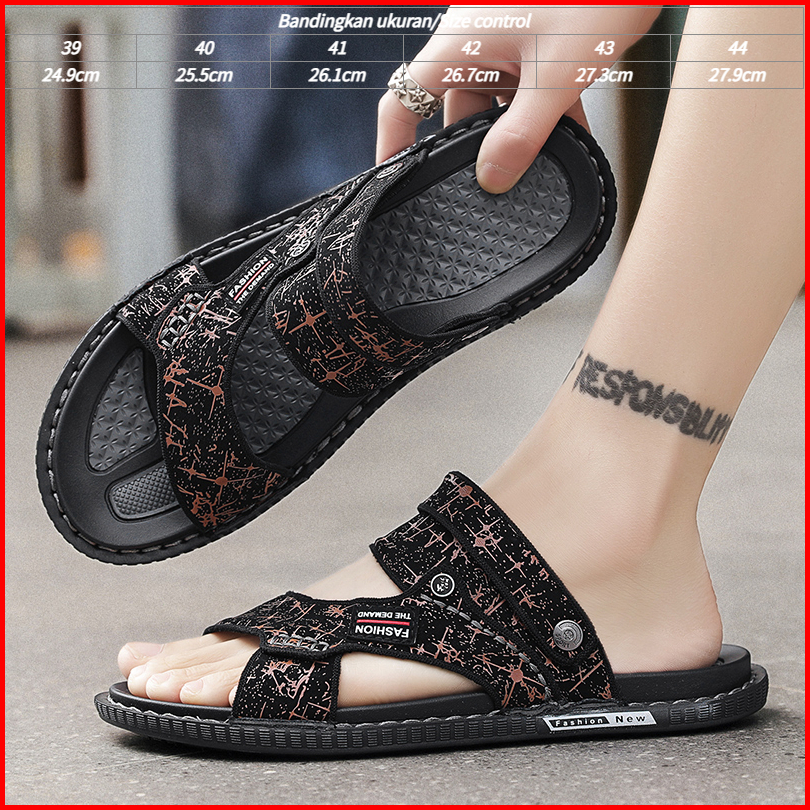 Sandal Pria Terbaru 2025 Anti Slip Sendal Cowok Slip On Outdoor Bahan Kulit Dan Karet Pvc Size 39-44