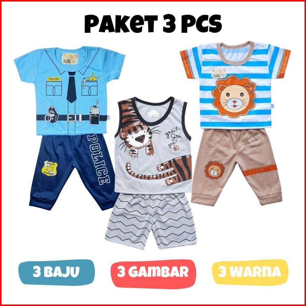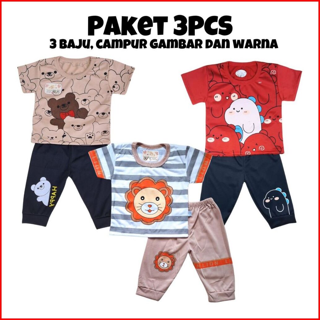 Paket Lebaran Terlaris Paket Bundling 3 Pcs Setelan Anak Laki Laki Usia 0-2 Tahun Baby Leticia