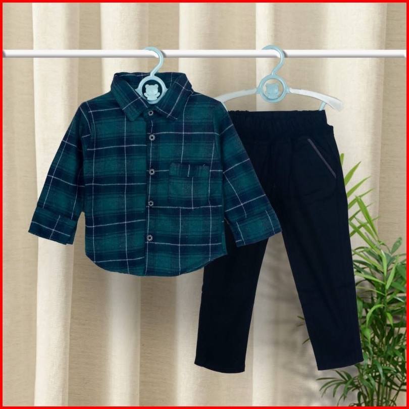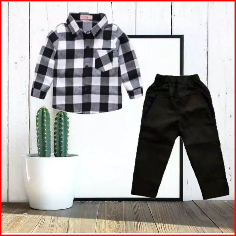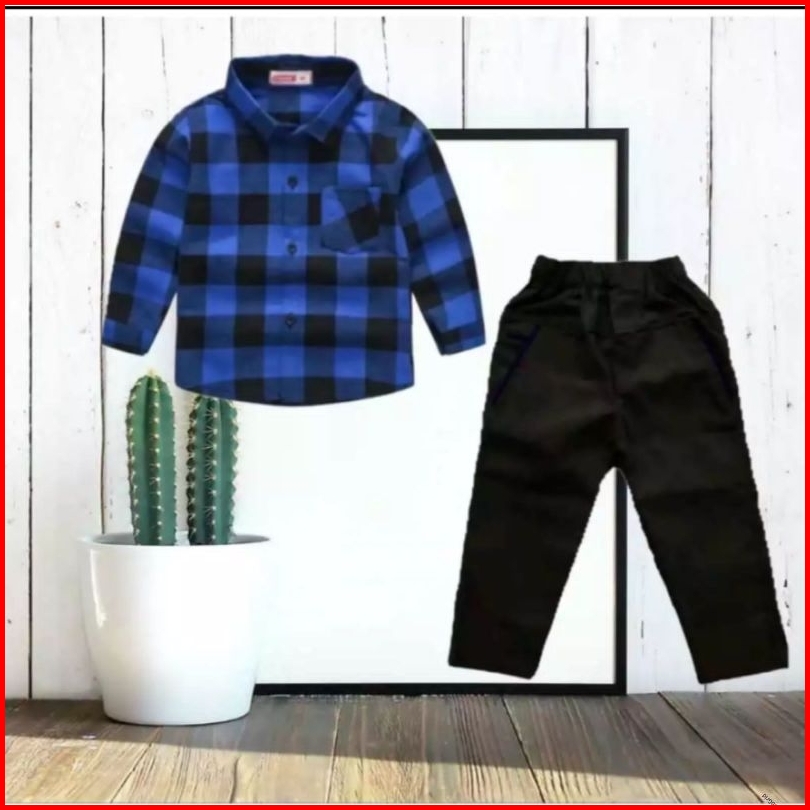 Set Kemeja Flanel Dan Chinos Panjang Anak Cowok Usia 1-9 Tahun