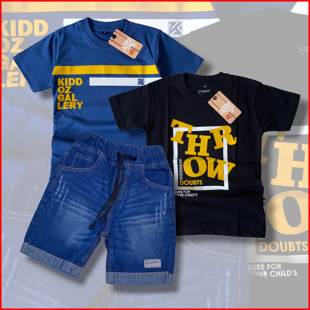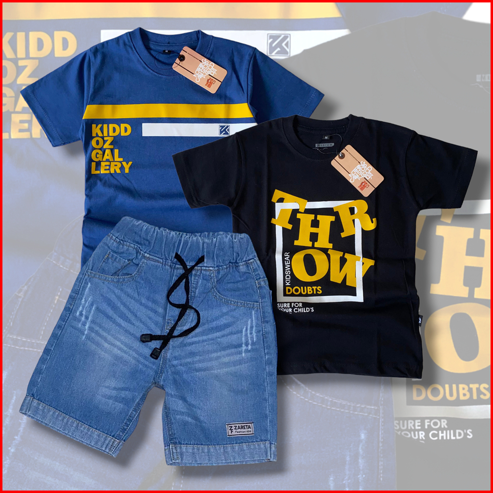 Paket Setelan Anak Dua Kaos Dan Celana Jeans Pendek Usia 4-12 Tahun Danim Kiddoz-hitam Throw