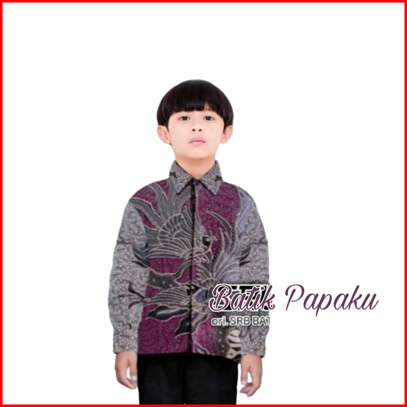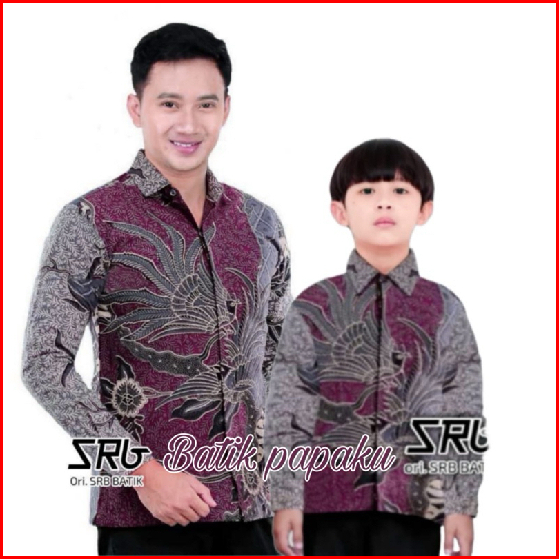 Kemeja Batik Anak Laki-laki Lengan Panjang Batik Ayah Dan Anak Cowok Warna Burgundy Motif Jatiasmoro