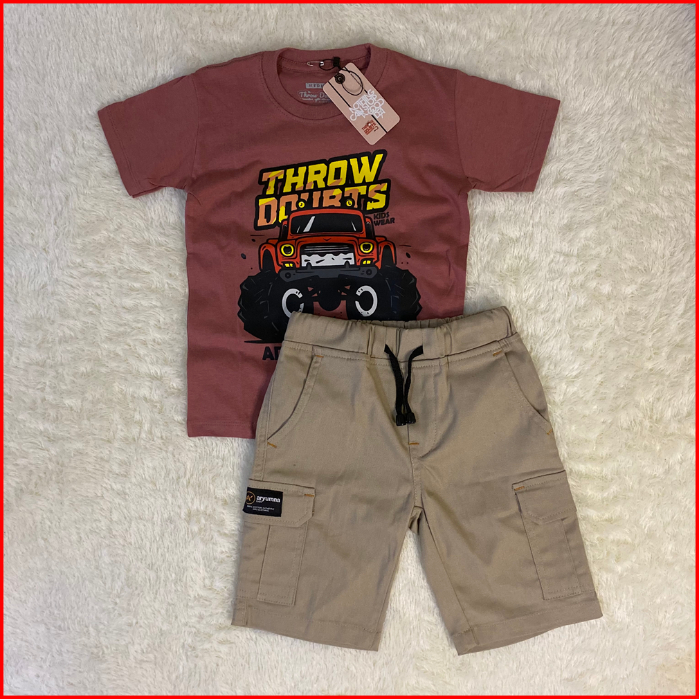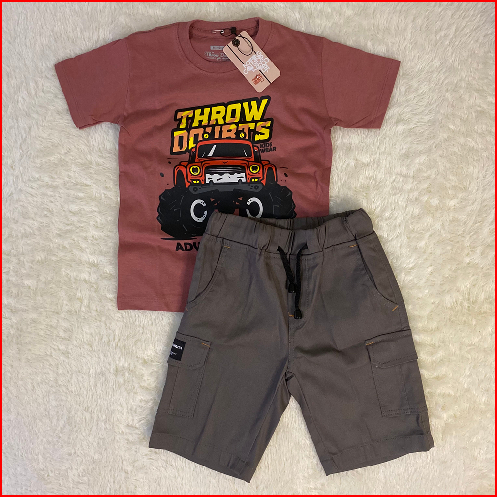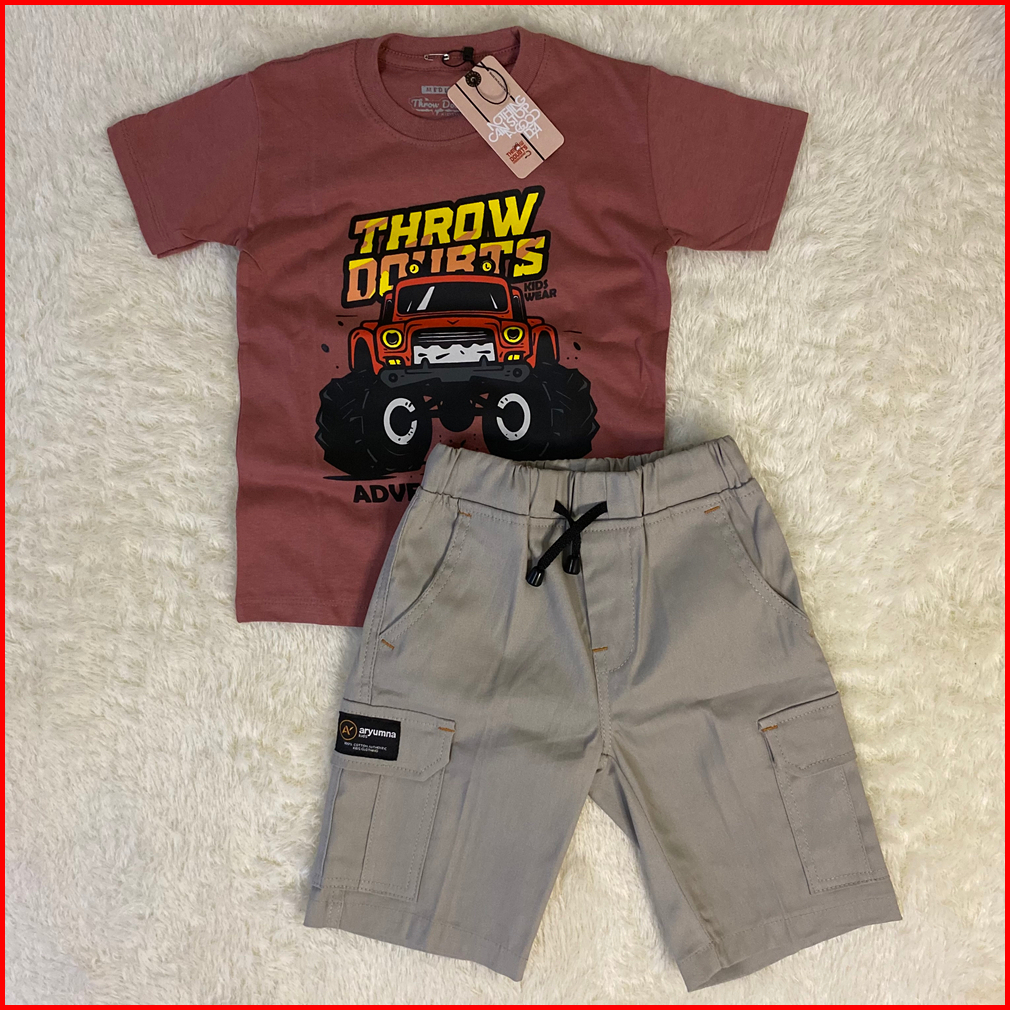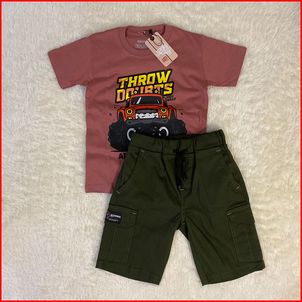 Setelan Cargo Pendek Anak Lakilaki Dan Kaos Distro Usia 4-12 Tahun Dusty Pink Truck