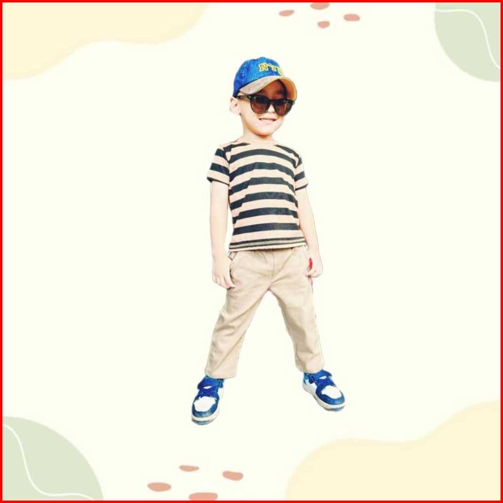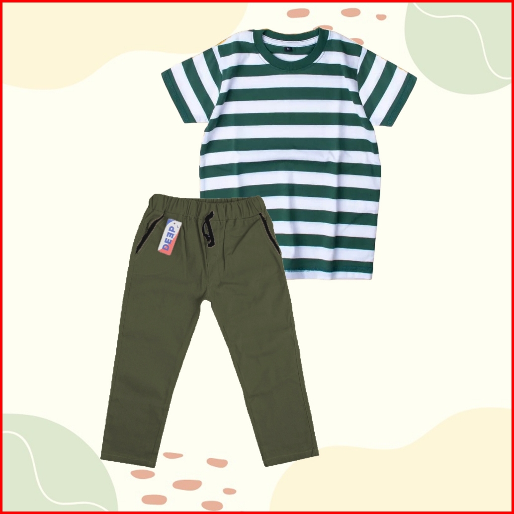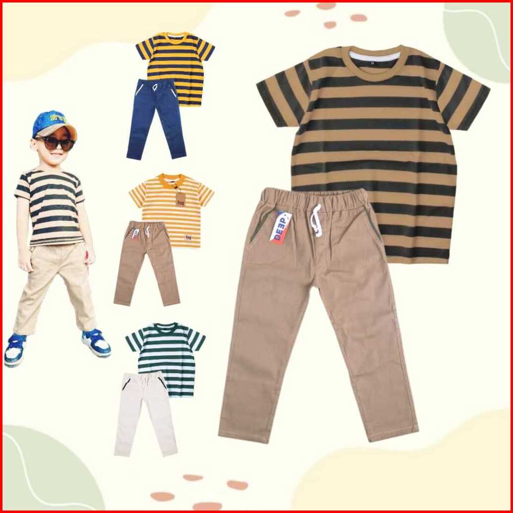 Setelan Anak Laki Laki Kaos Stripe Salur Celana Panjang Chinos Usia 1-12 Tahun Bahan Cotton 24s Chinos Premium