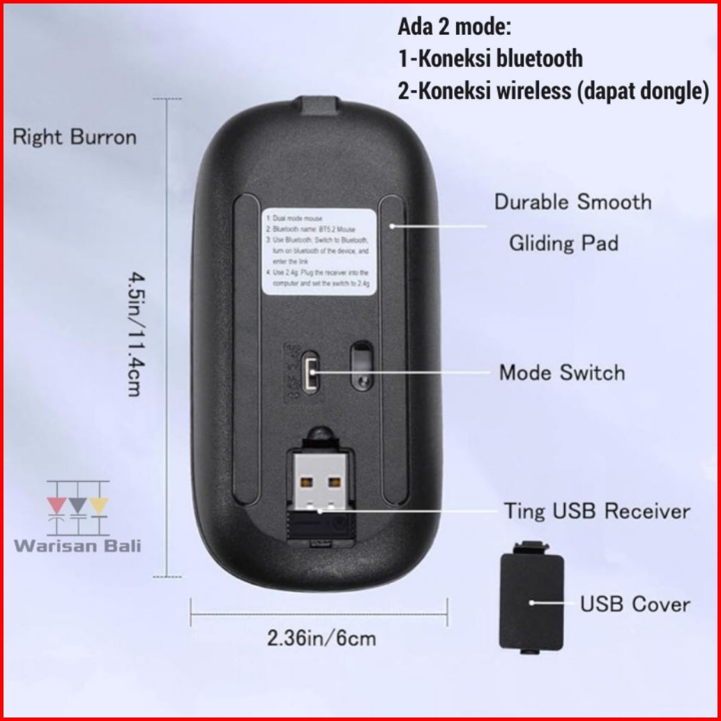 Mouse Bluetooth Untuk Ipad Tablet Laptop Hp Mode Bluetooth Dan Wireless Tanpa Kabel