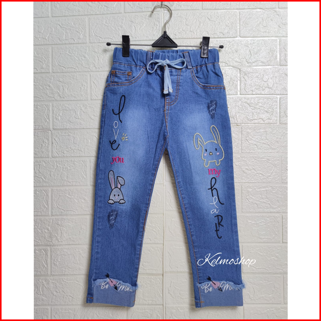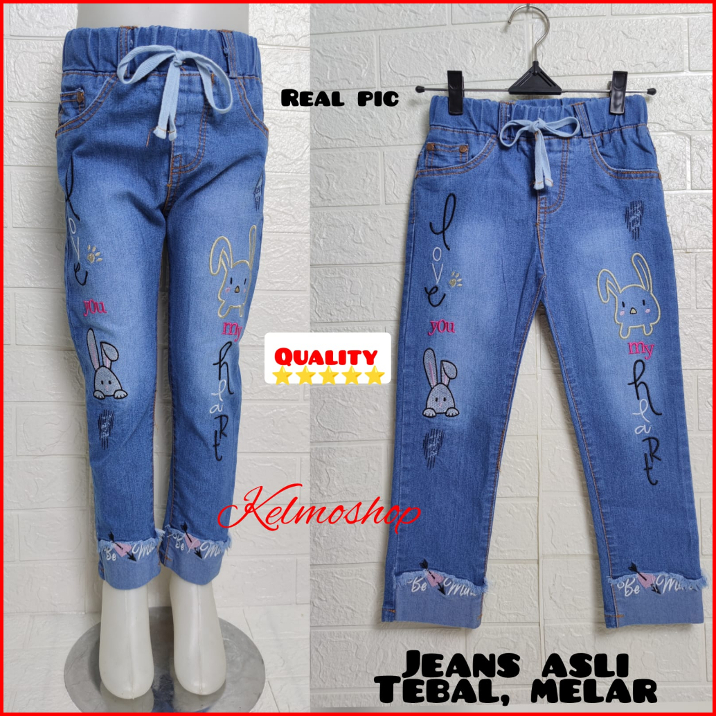 Celana Panjang Jeans Anak Perempuan Berkualitas Dan Termurah 4-12th Jeans Anak Murah Jogger Cp Krt Kelinci Love