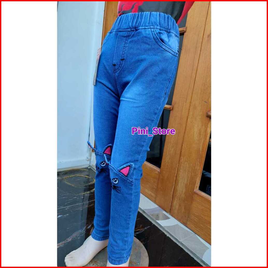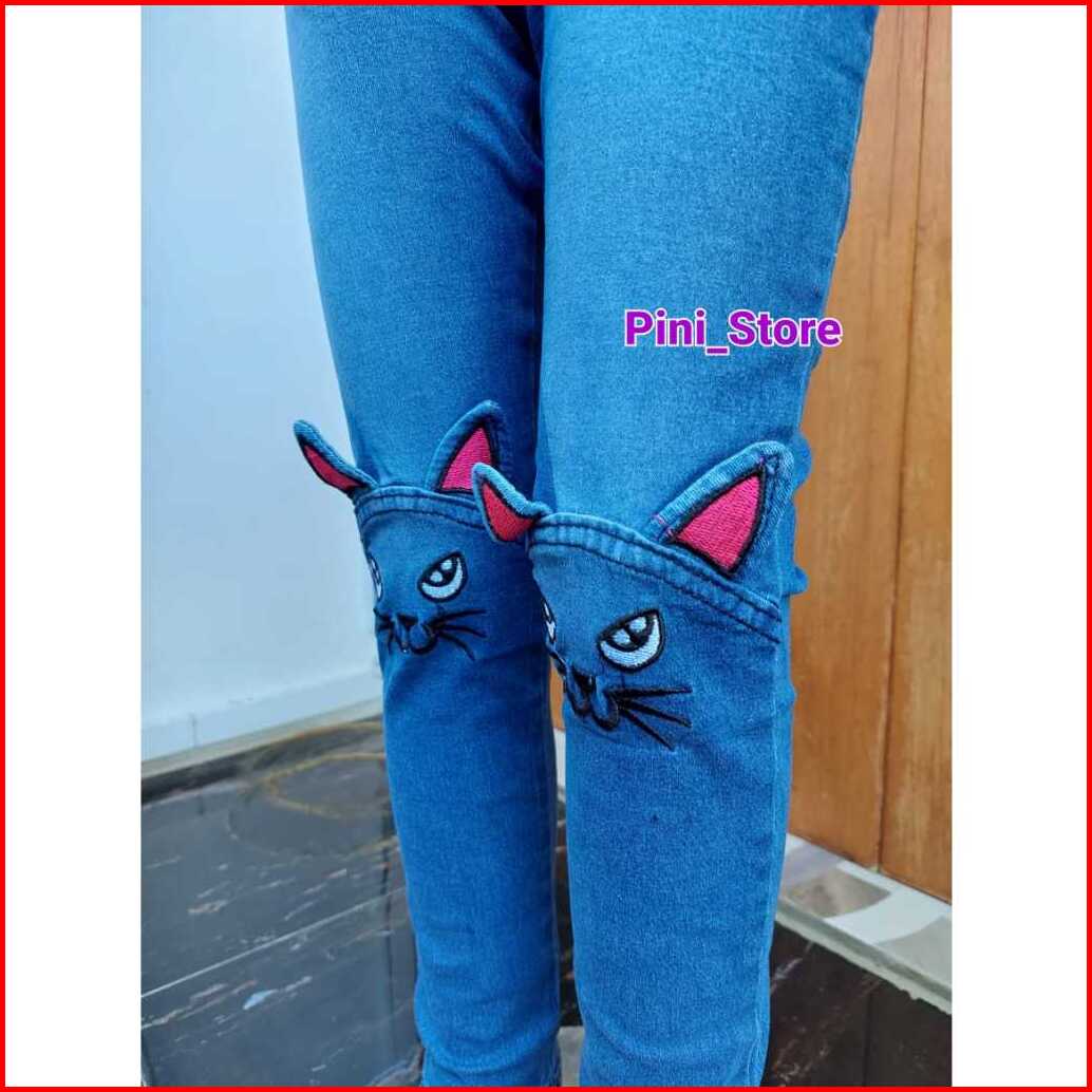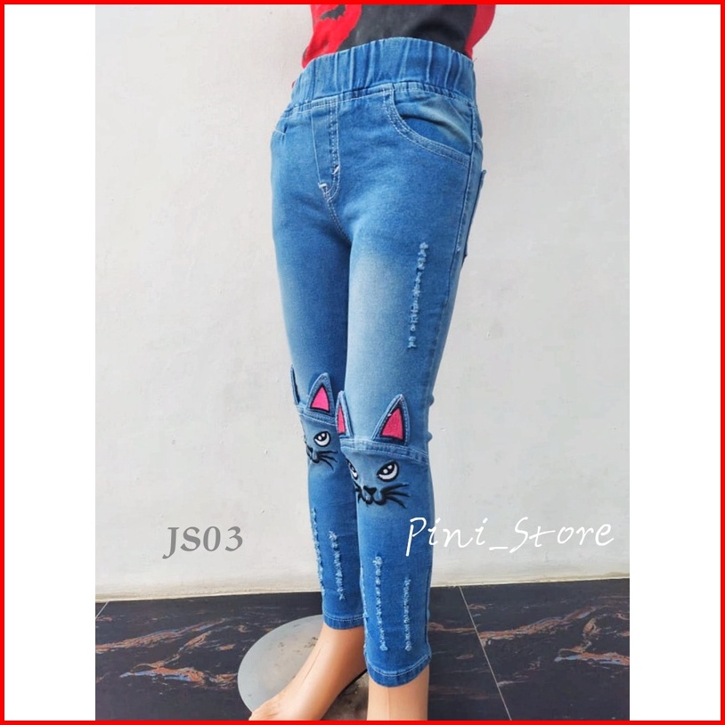 Js03 Celana Jeans Anak Bordir Kucing 1-12 Tahun