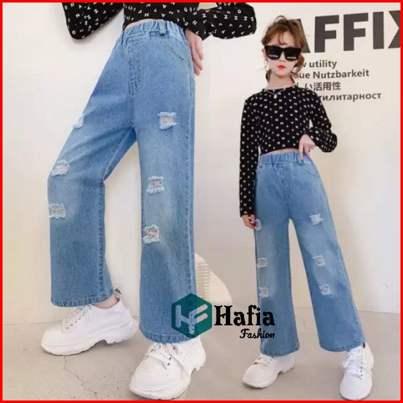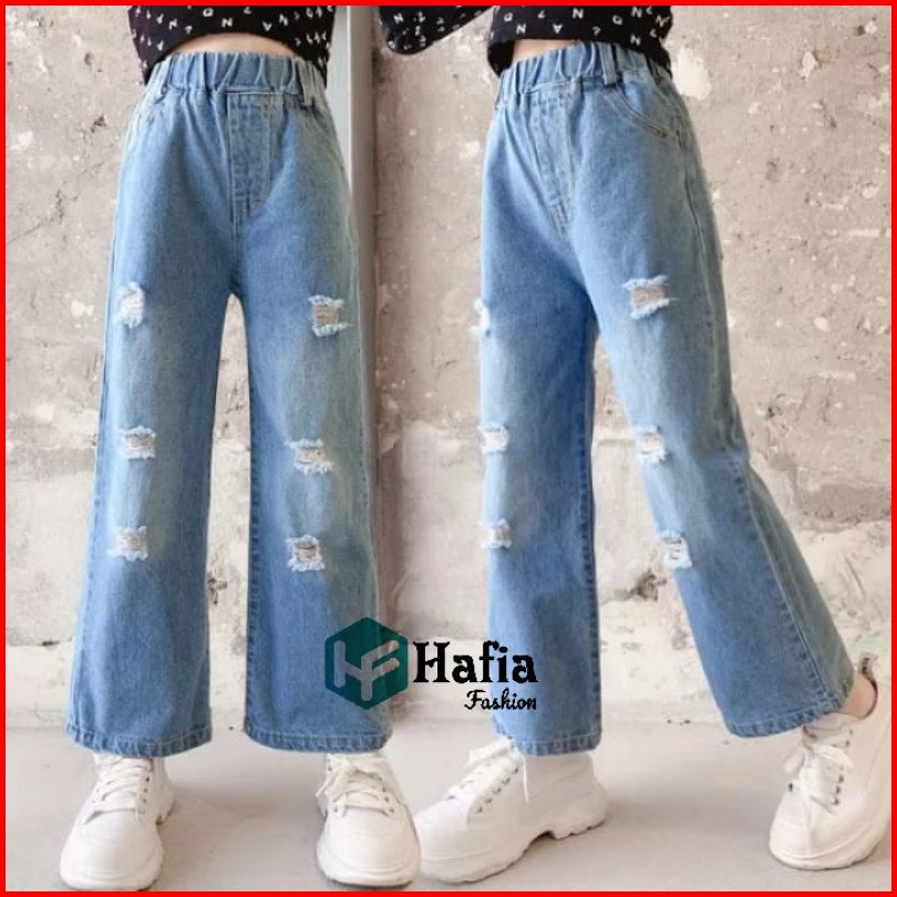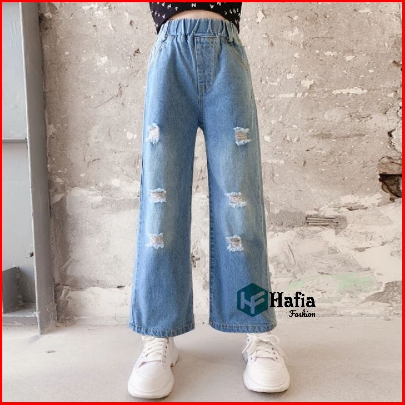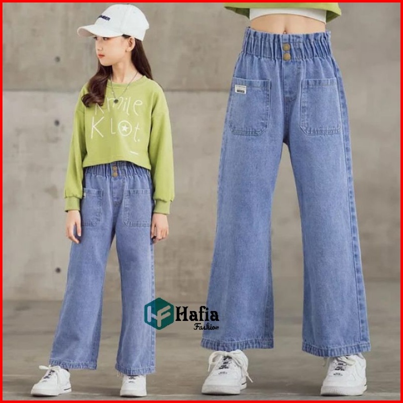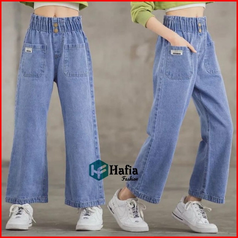 Celana Kulot Jeans Pocket Anak Perempuan Usia 7-12 Tahun