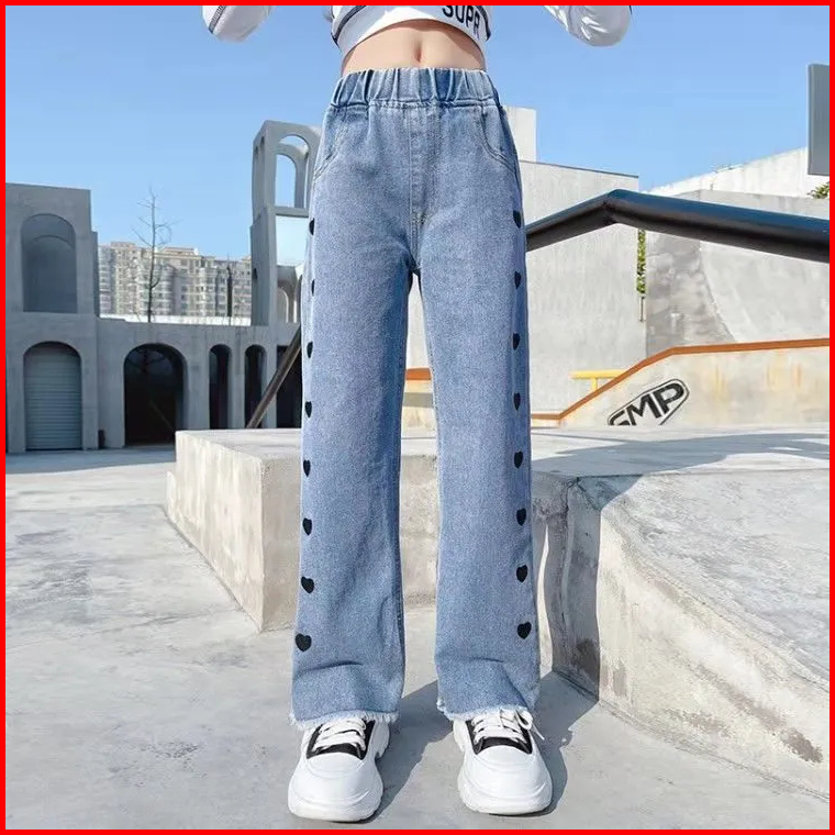Kulot Bordir Love Snow Blue Anak Perempuan Bahan Jeans Asli
