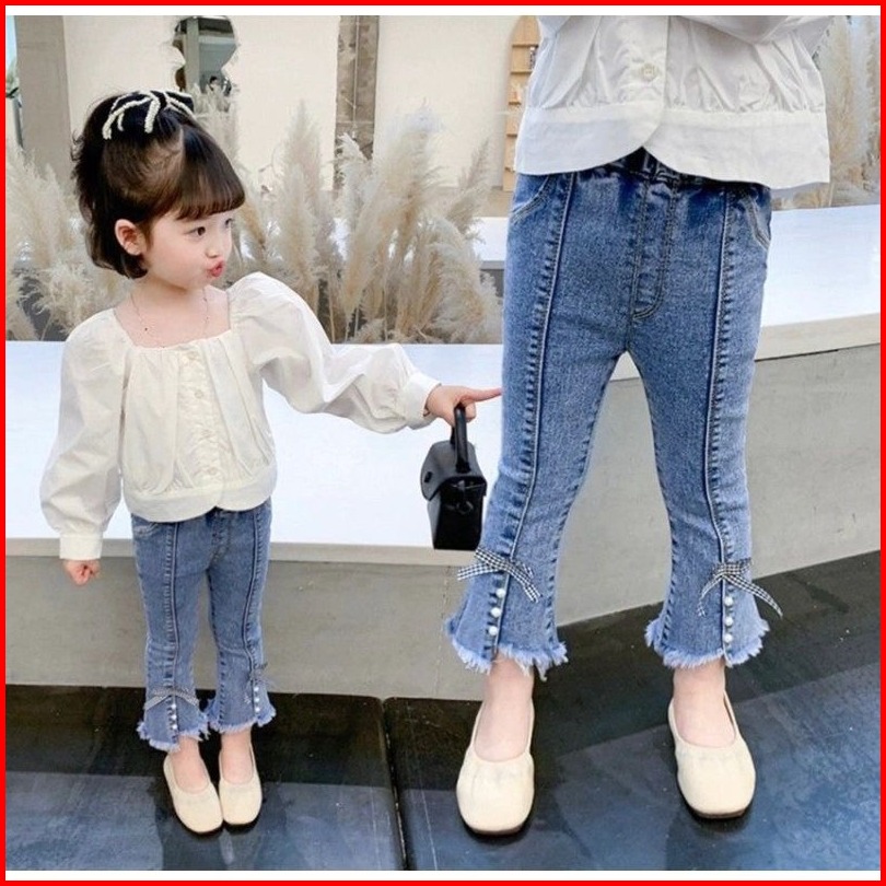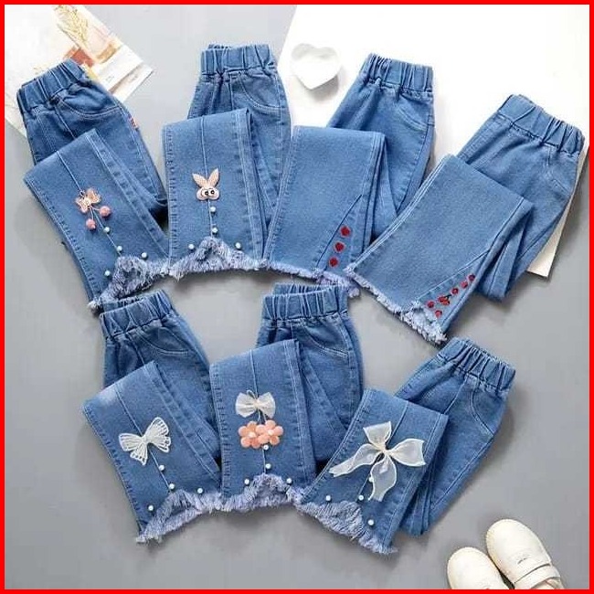 Jeans Anak Perempuan Import Model Rawis Mutiara Usia 18 Bulan - 10 Tahun Kekinian Terlaris 2024