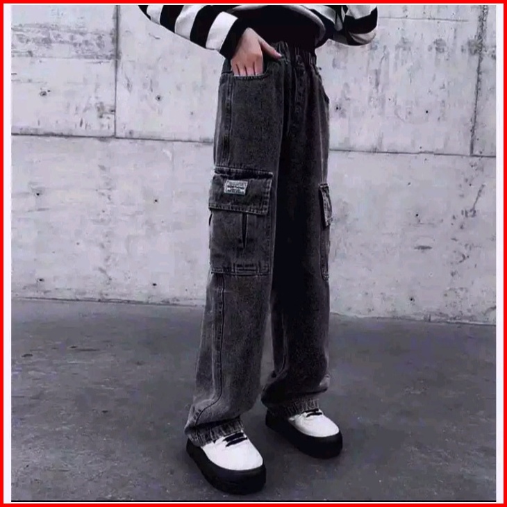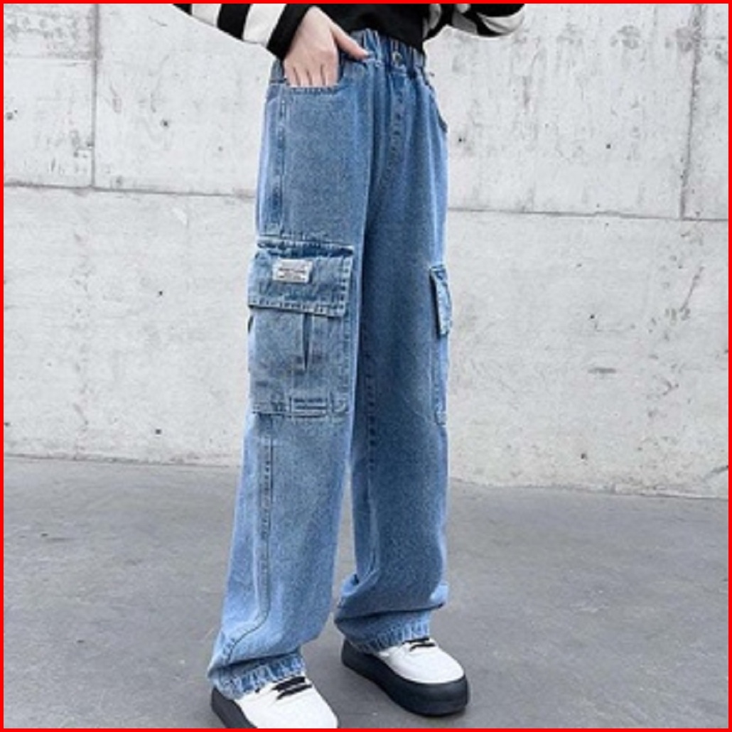 Celana Kargo Anak Perempua Kulot Jeans Cargo Anak Celana Kulot Anak Perempuan Umur 6-12 Tahun