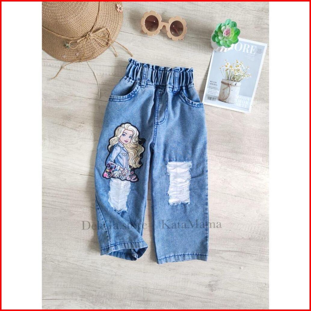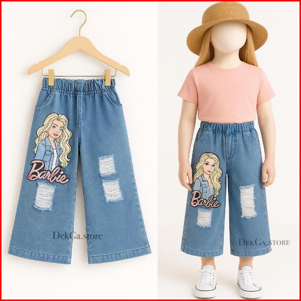 Celana Kulot Sobek Jeans Panjang Motif Barbie Celana Anak Perempuan 3-12tahun Jeans Denim Lembut