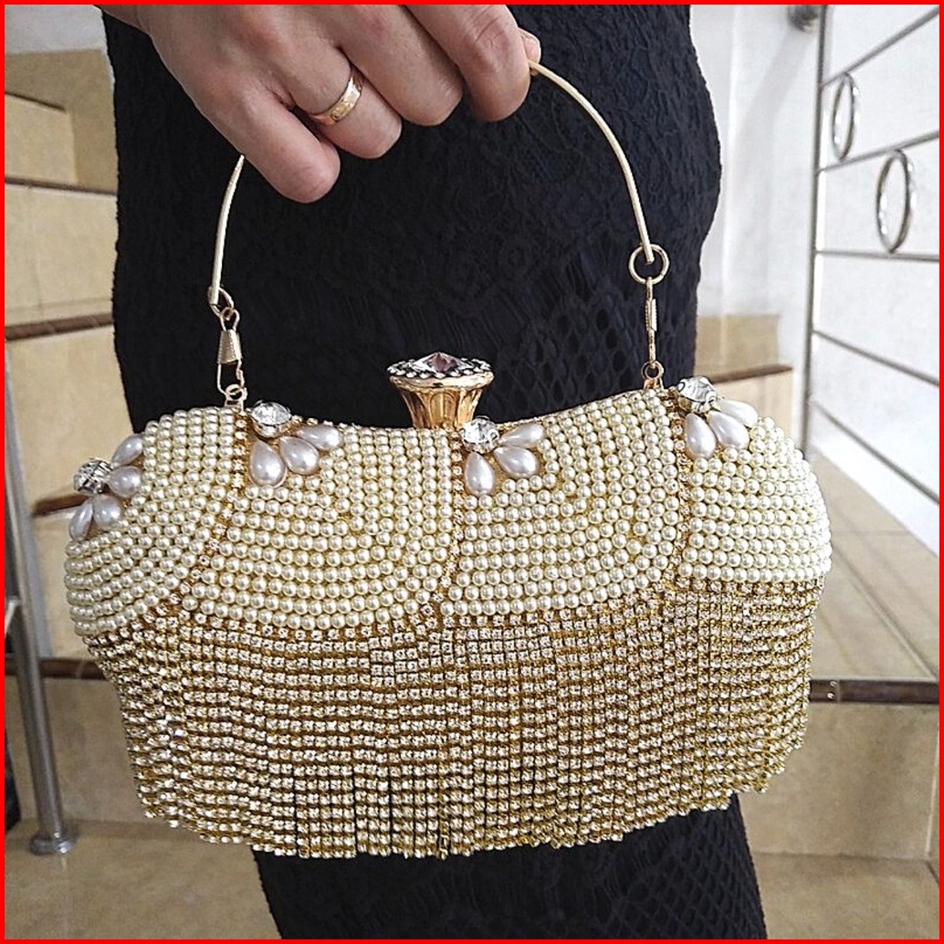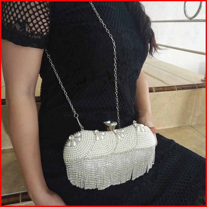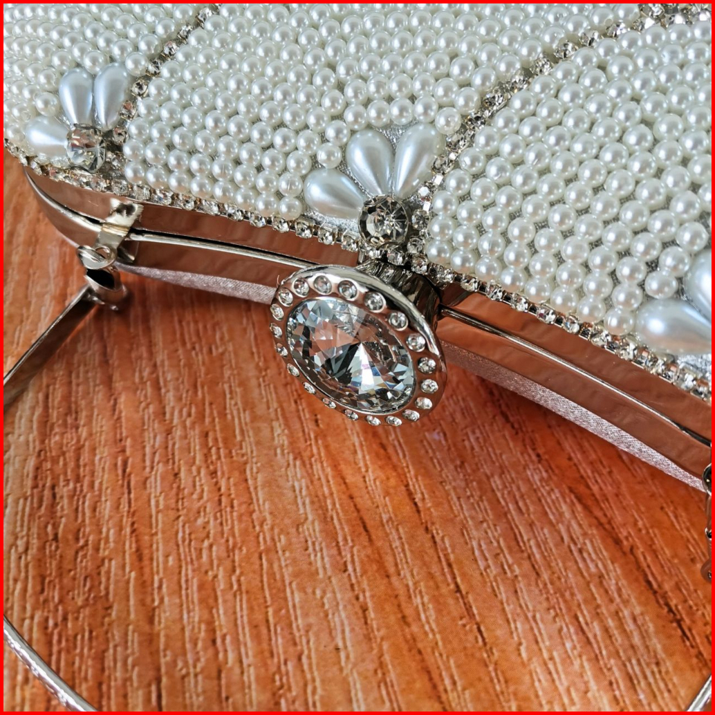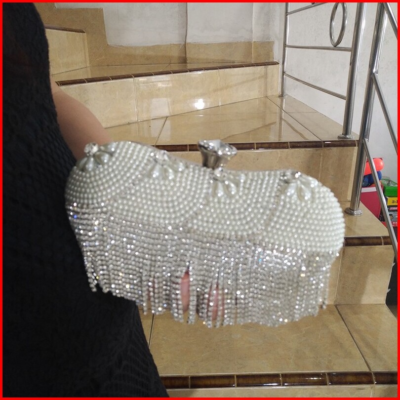 Tas Pesta Kristal Mutiara Import Mewah Gagang Kondangan Pengantin Wanita Wisuda 7005 Kliksista Ivy