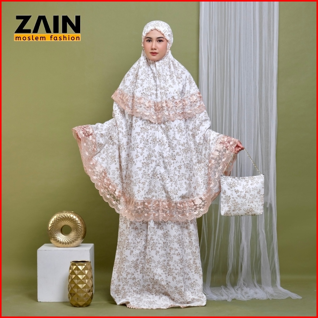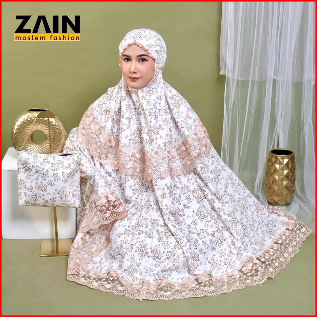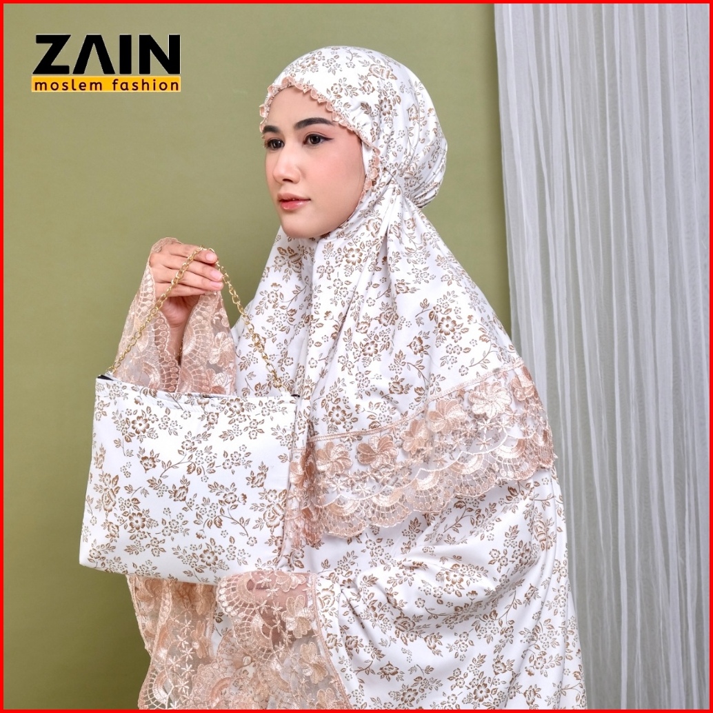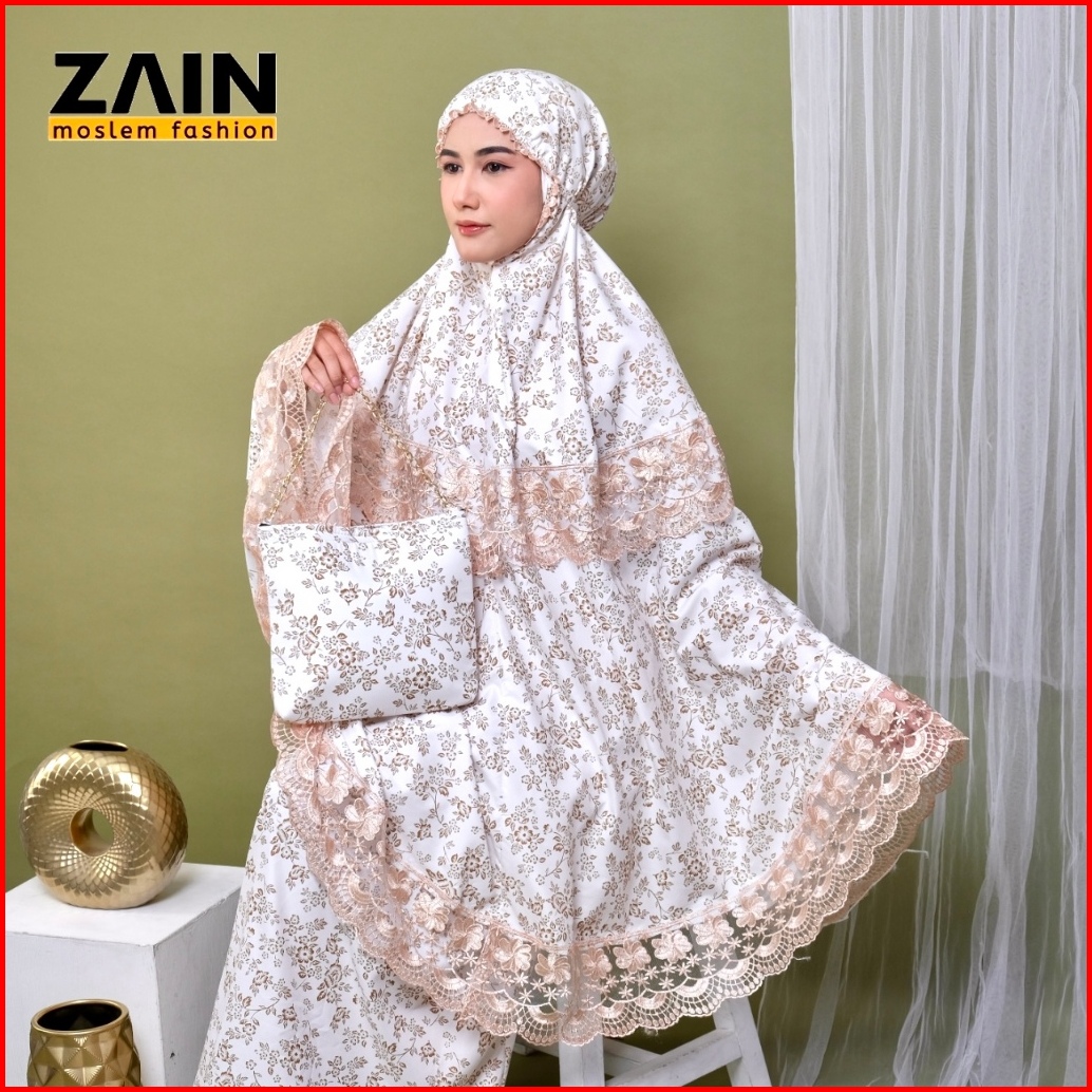 Zain Moslem Fashion Mukena Dewasa Katun Poil Kalung Premium Print Bordir Bunga Mewah Exlusive